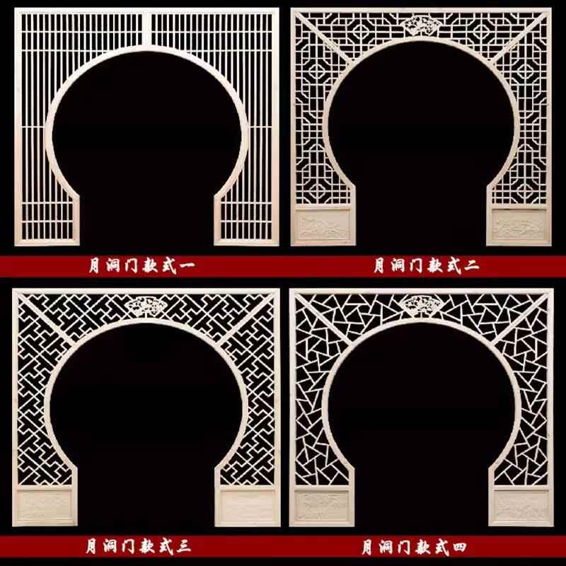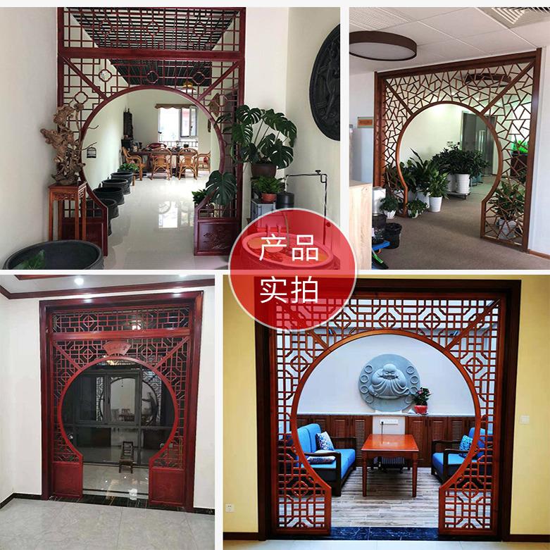 东阳木雕实木花格仿古门窗客厅中式月洞门隔断月亮门博古架圆拱门