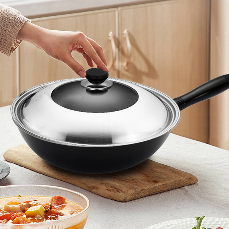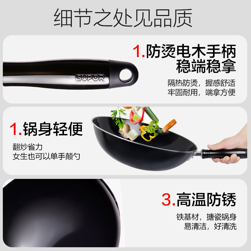苏泊尔官方家用大铁锅炒菜锅炒锅老式大圆尖底搪瓷煤气灶燃气专用
