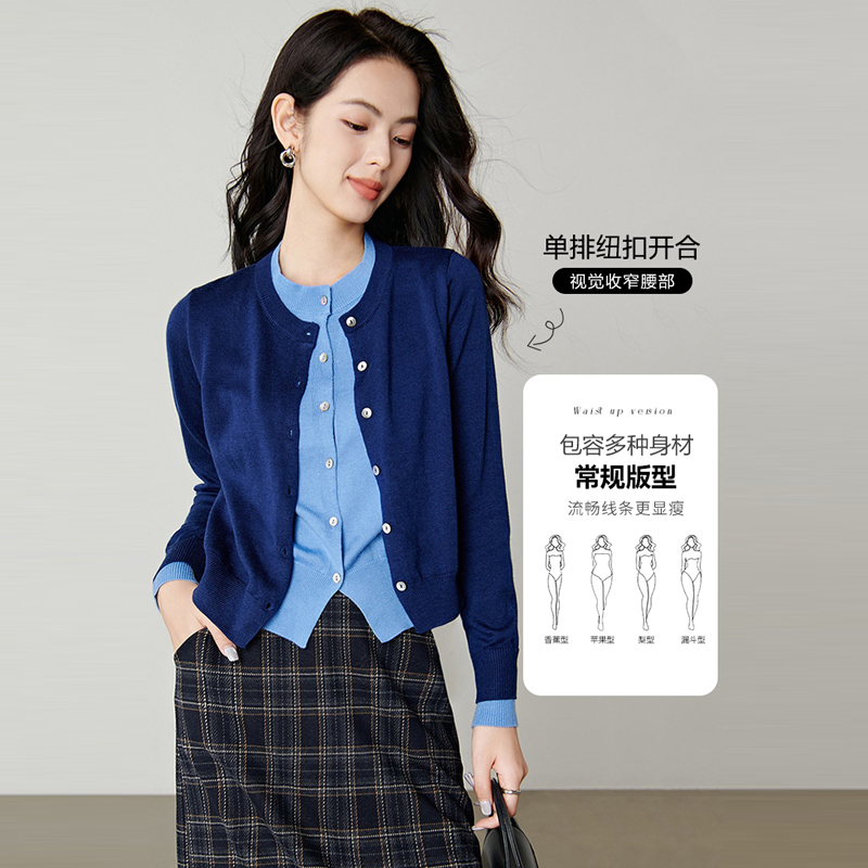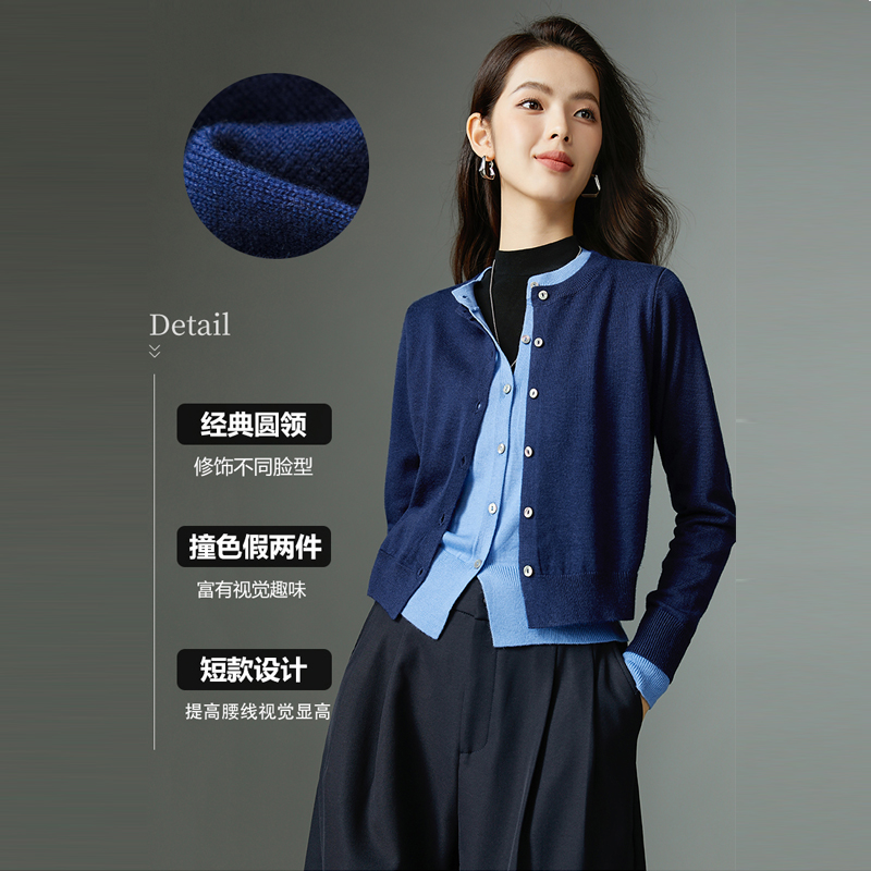 晚白【断码清仓】2025韩系内搭叠穿开衫撞色假两件针织衫外套女