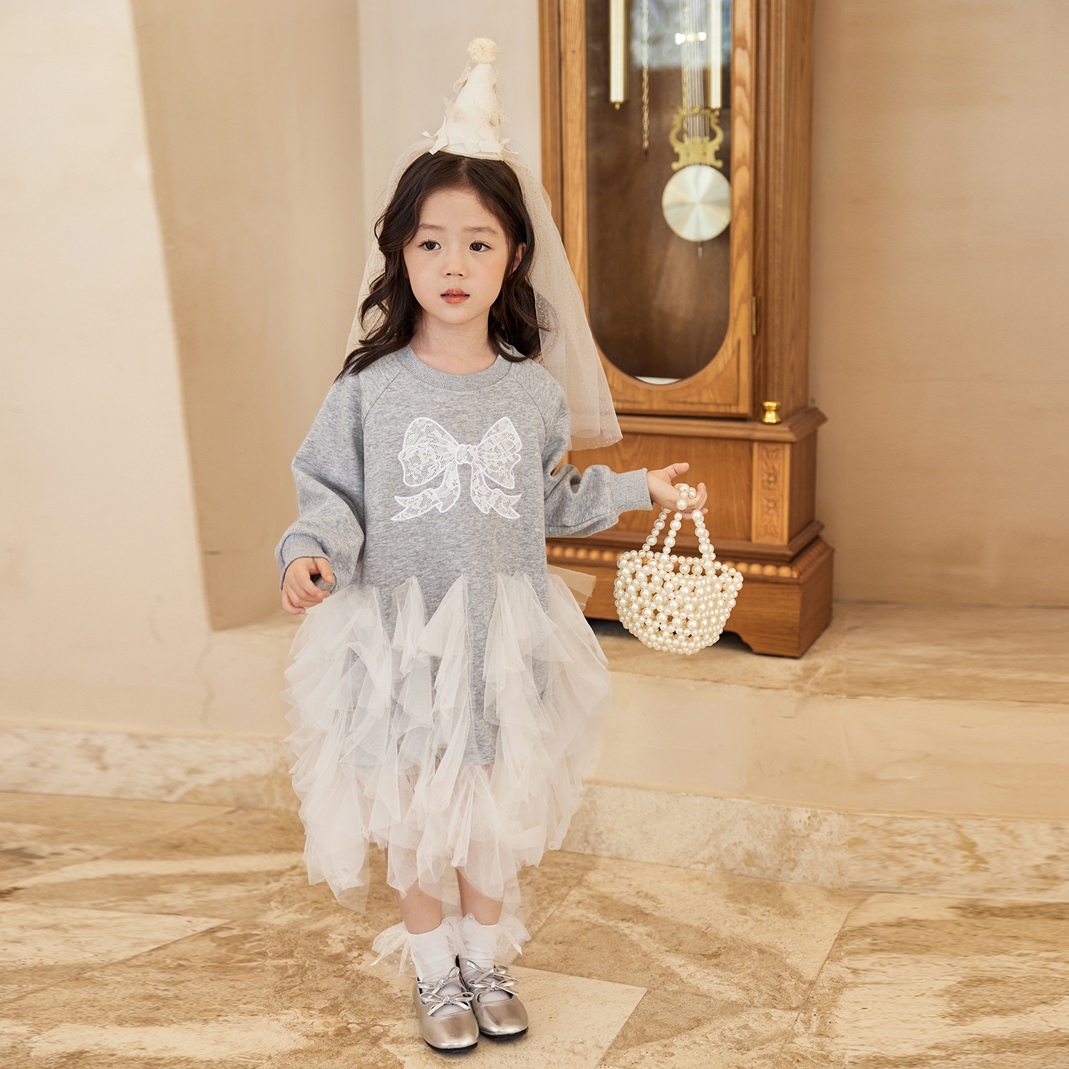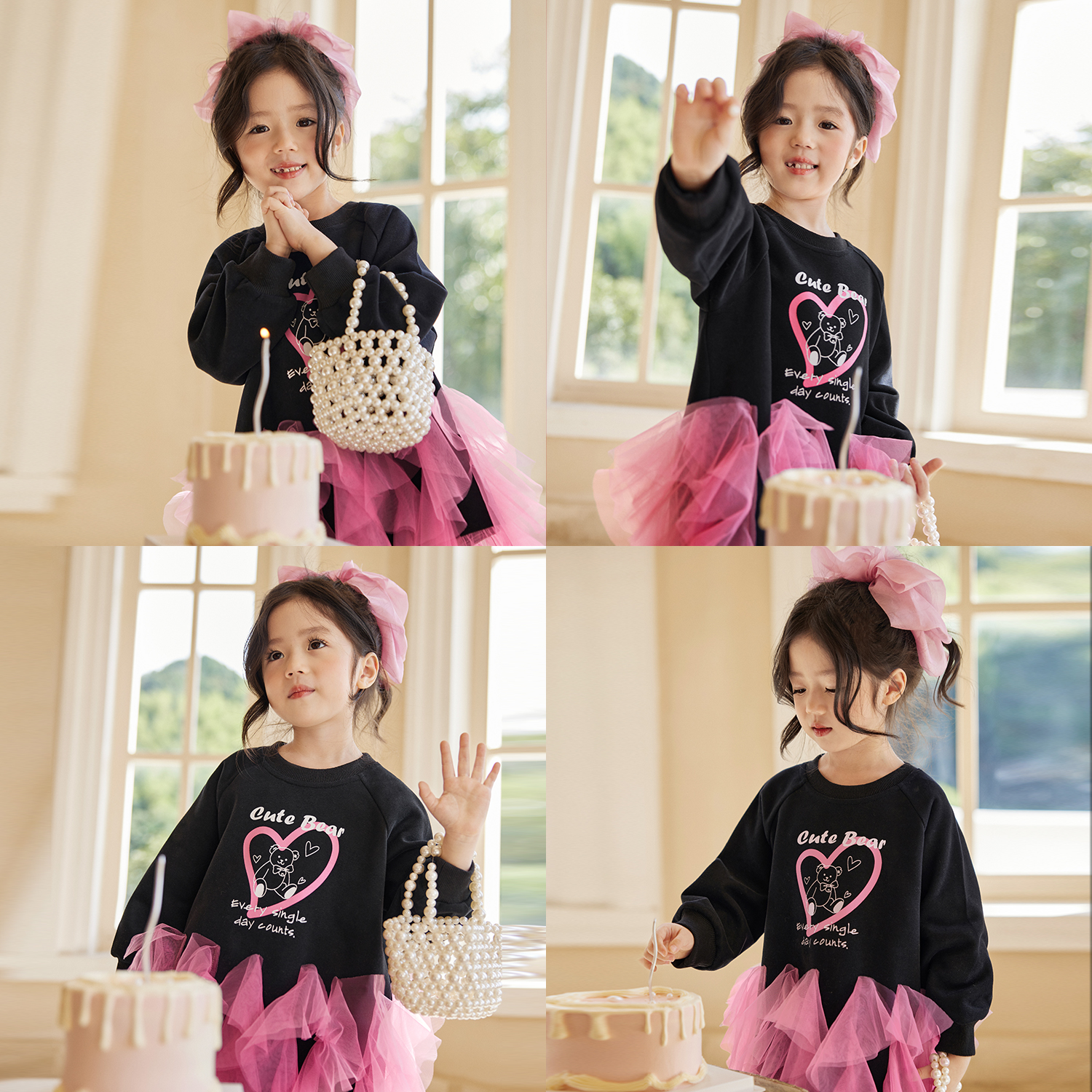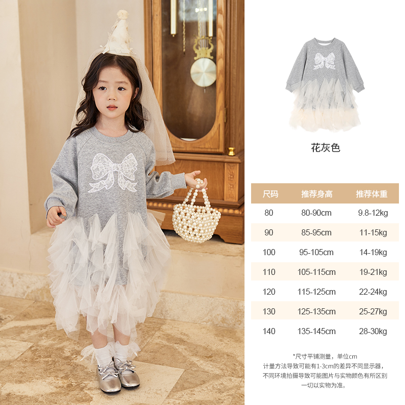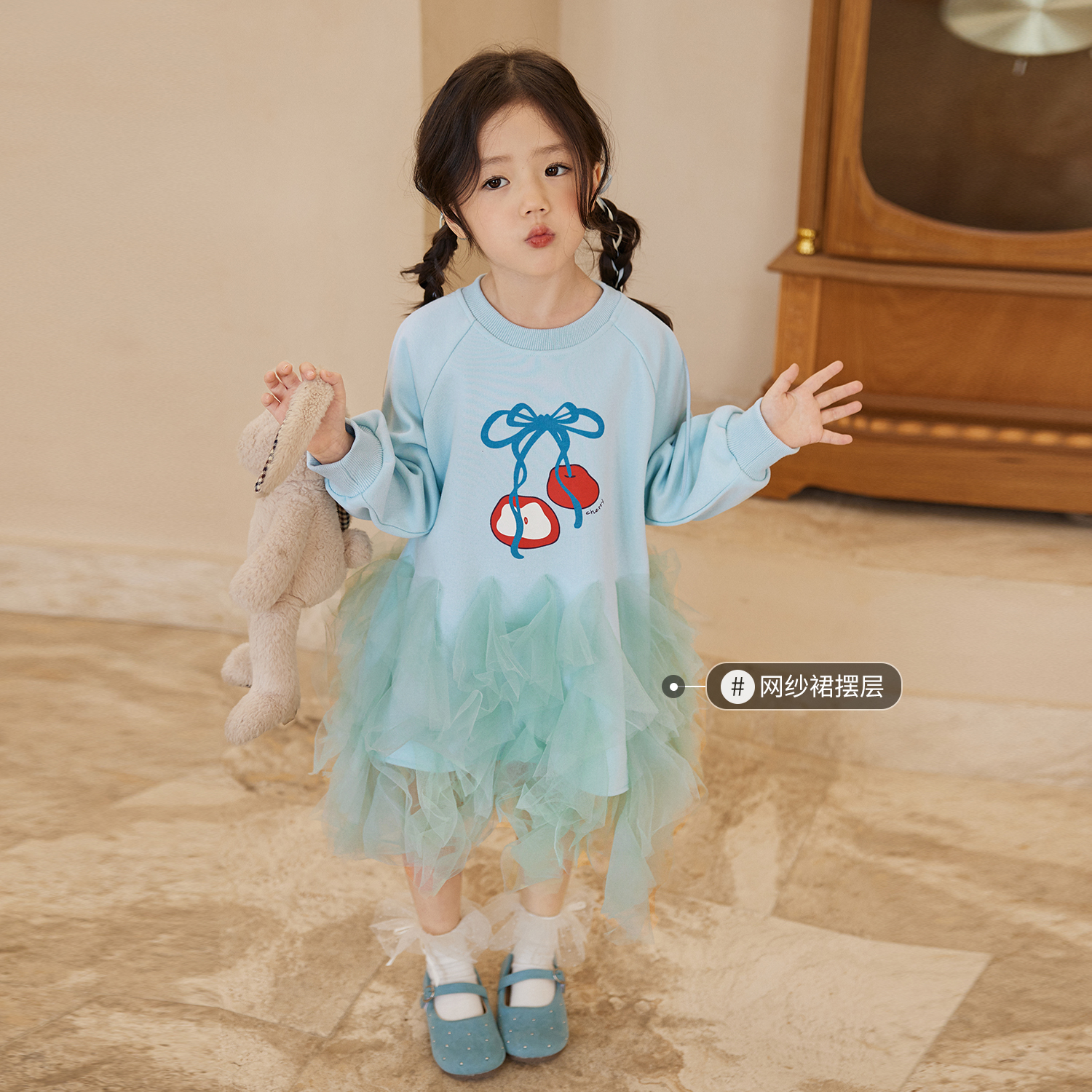 小O宝Okids童装宝宝网纱卫衣裙女蓬蓬裙2025秋装新款女童连衣裙