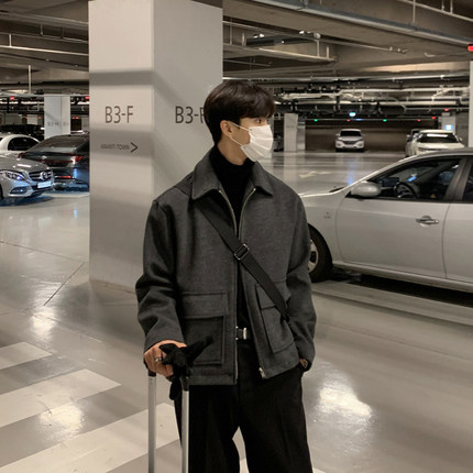 碧舍流行新款夹克秋冬季毛呢大衣男短款休闲韩版帅气呢子外套潮流