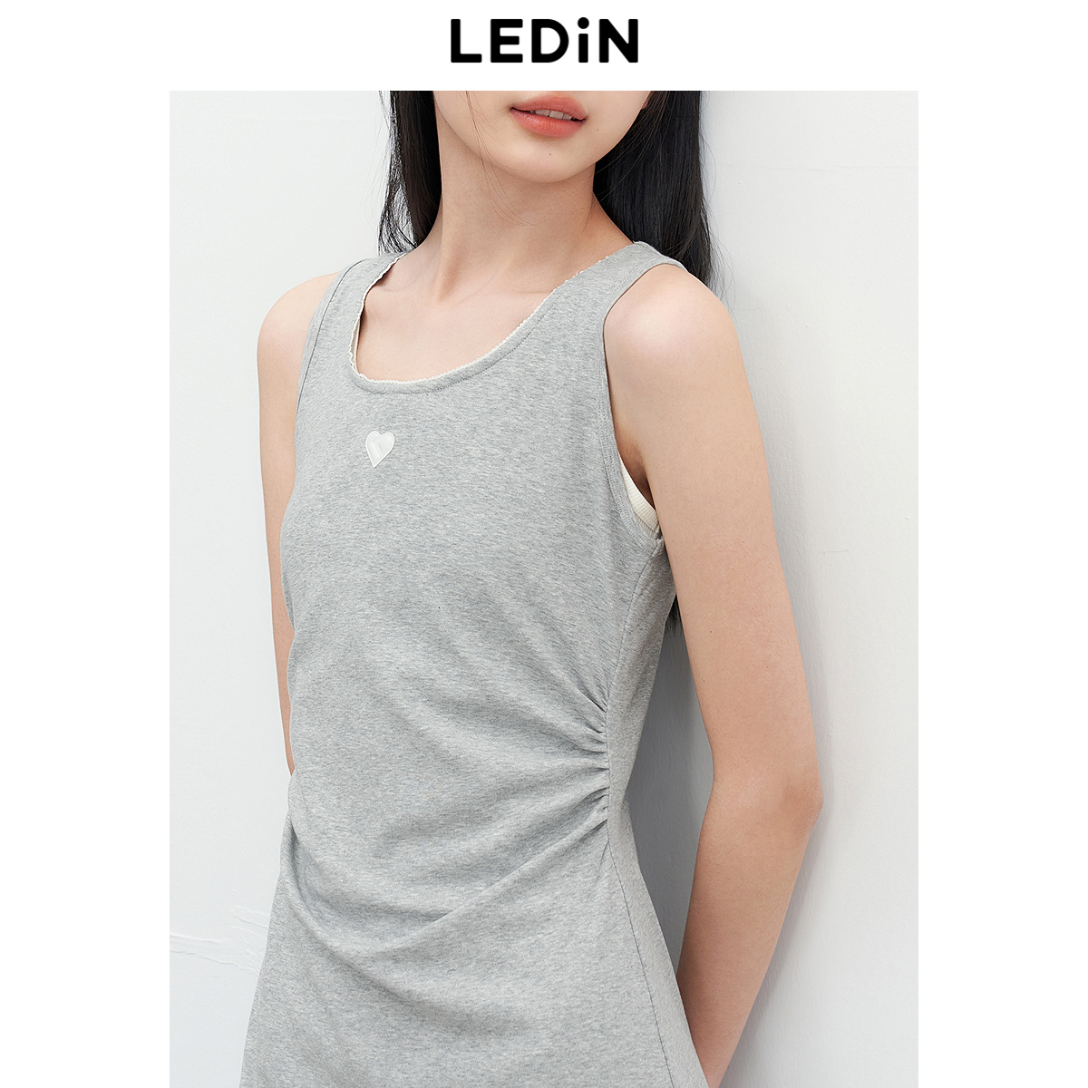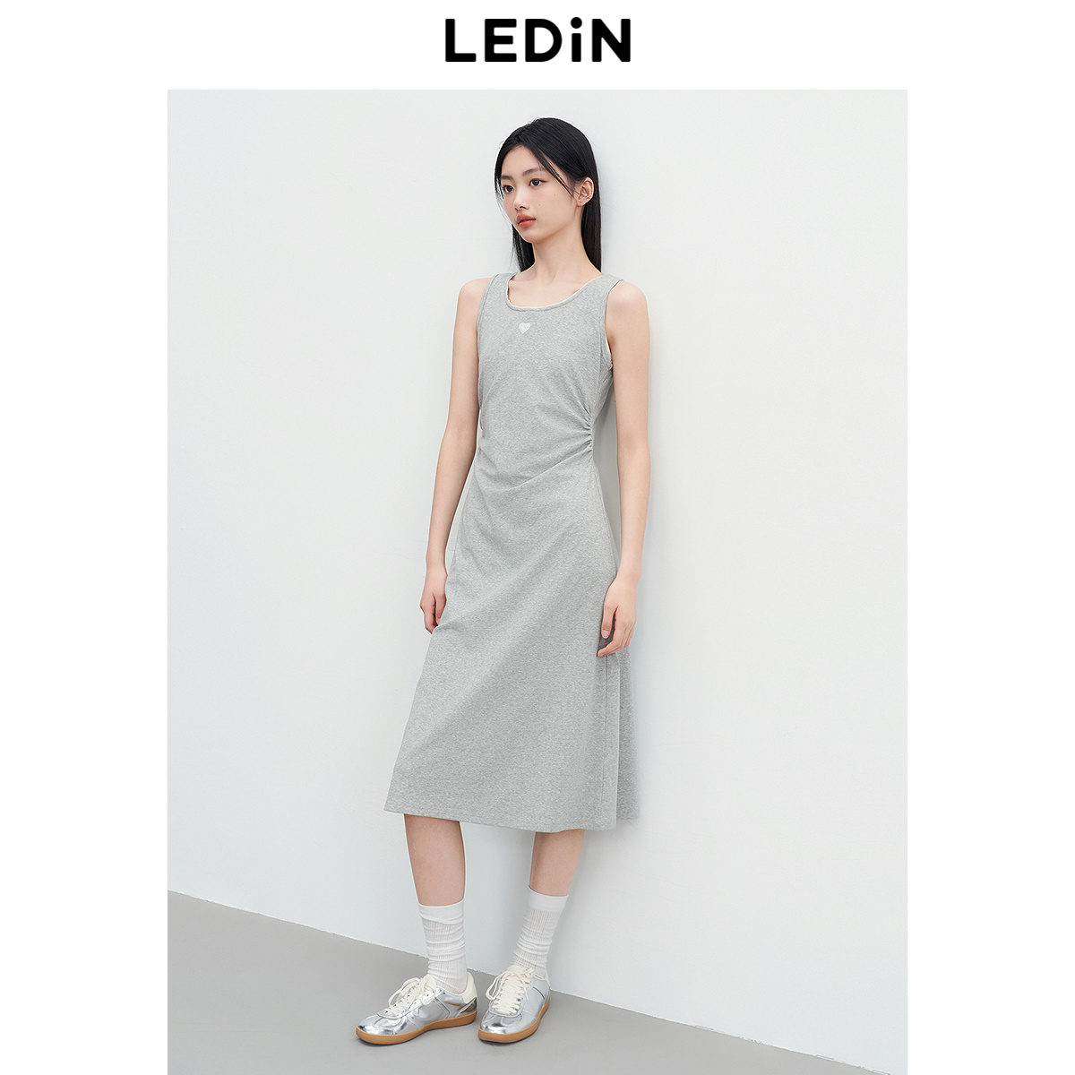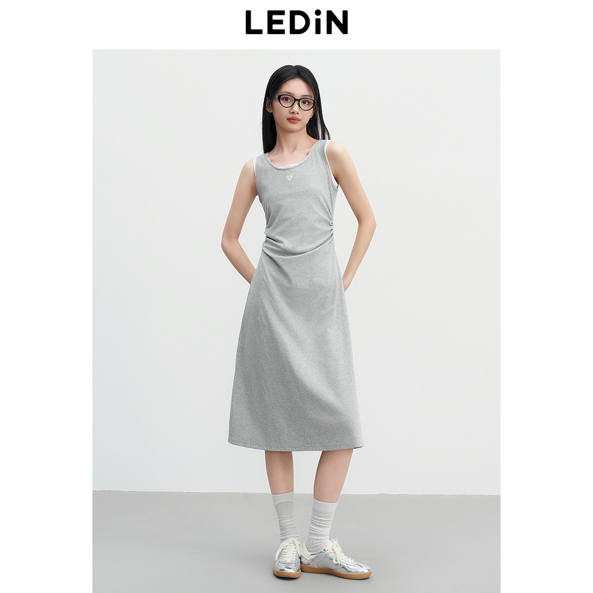 乐町无袖长款针织连衣裙女2025年夏季新款简约开叉韩系通勤裙子
