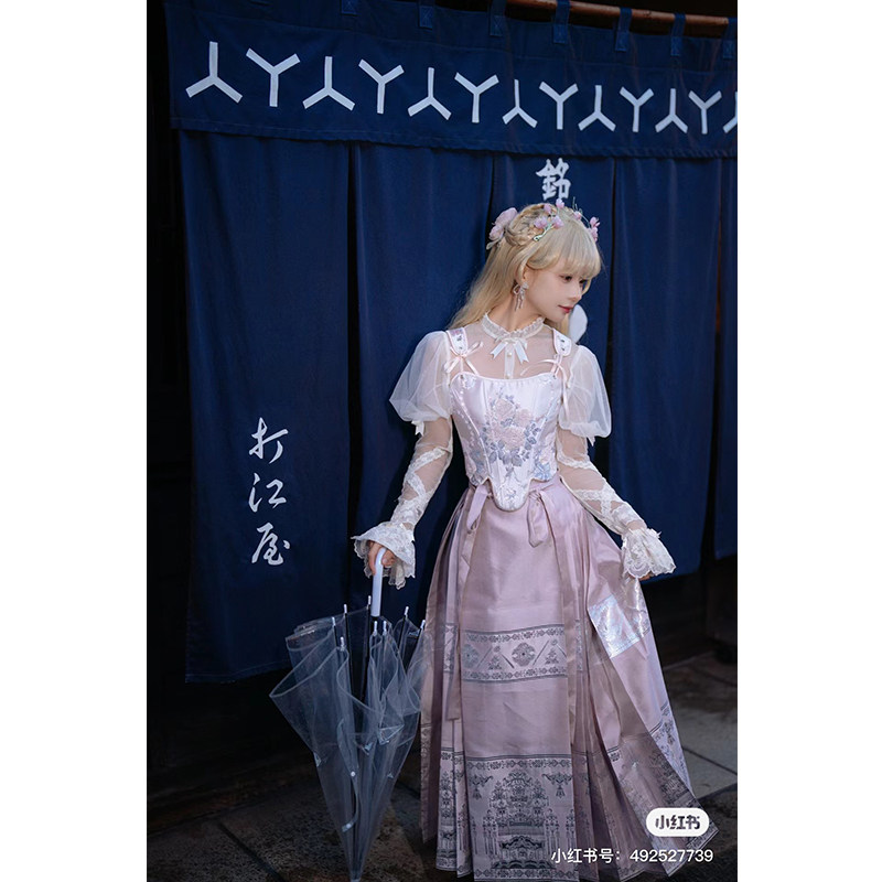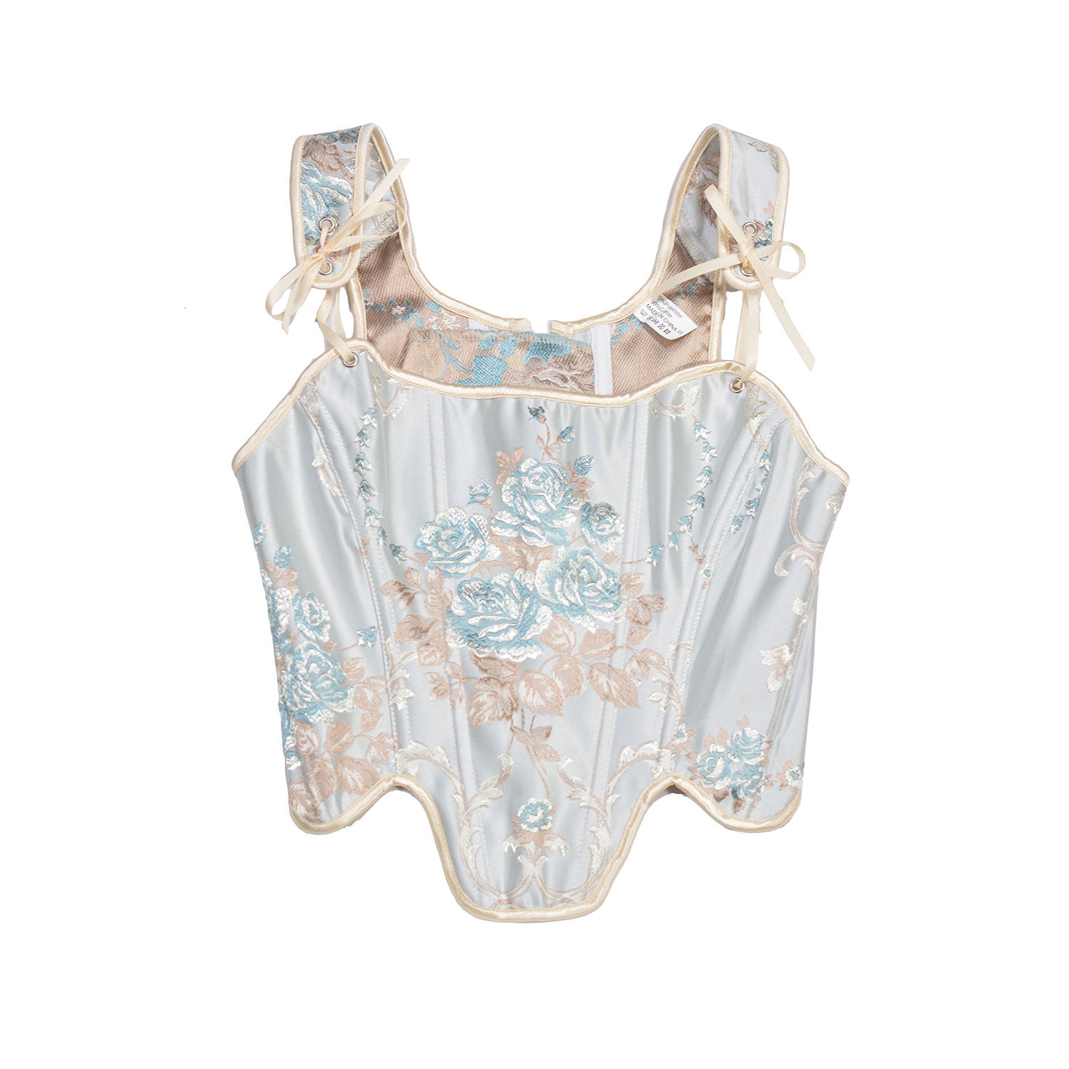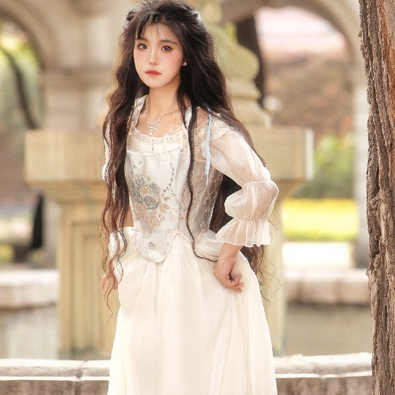 Vintage迪士尼中式公主法式宫廷缎面牡丹复古鱼骨胸衣吊带女上衣