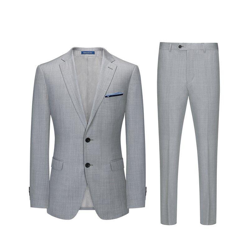 【澳嘉】全羊毛西装男套装灰色男士正装定制修身新郎结婚礼服西服