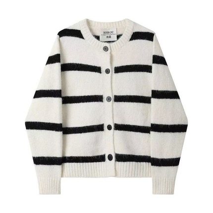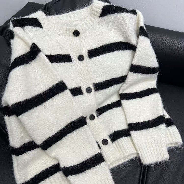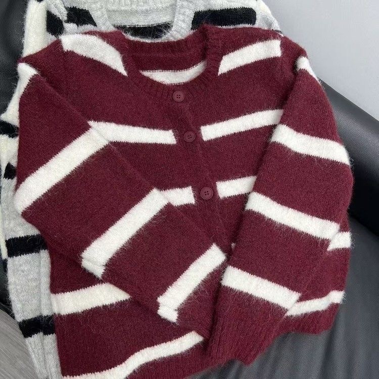 韩系条纹针织上衣女2025春季新款小个子慵懒风毛衣开衫外套