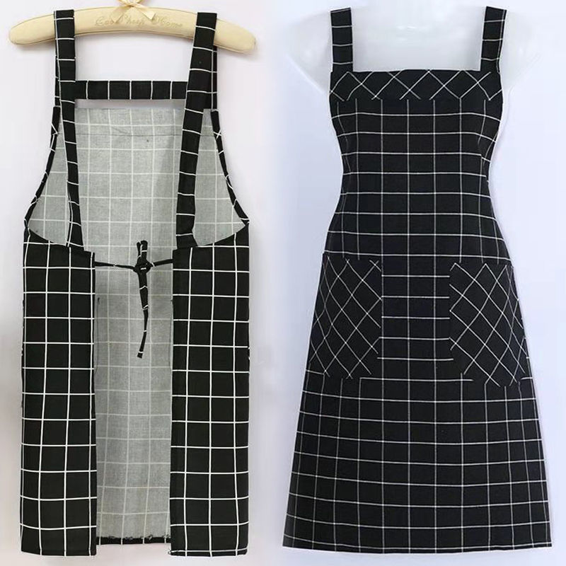 纯棉格子高档背带围裙棉布女时尚柔软透气围腰家用厨房做饭工作服
