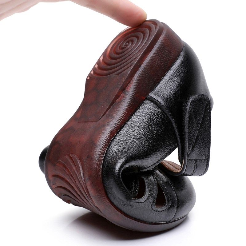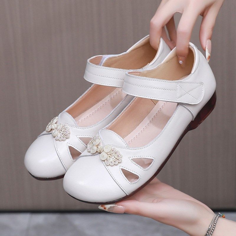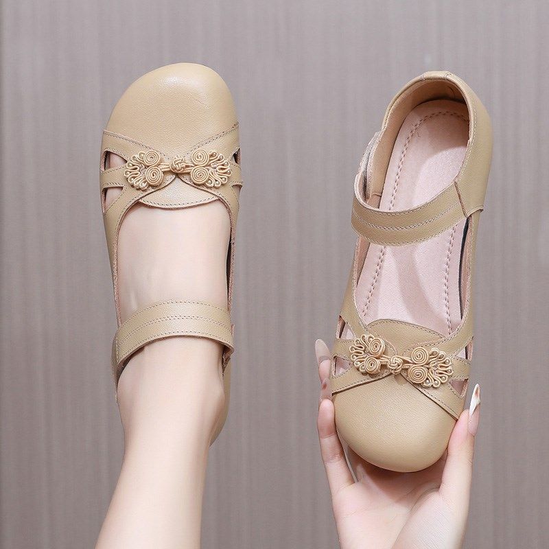 真皮软底妈妈鞋女夏季单鞋透气软皮鞋包头镂空凉鞋大码中老年女鞋