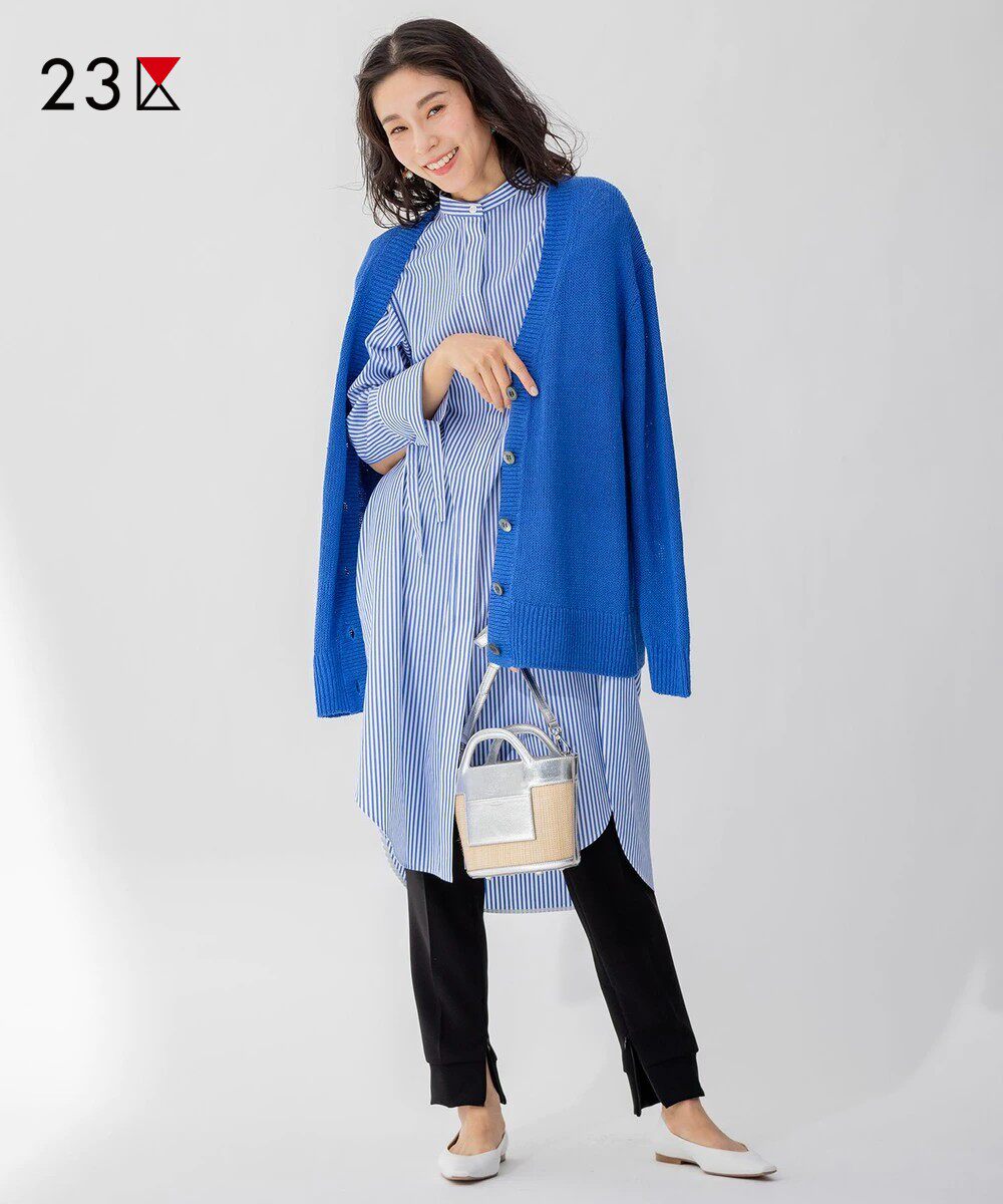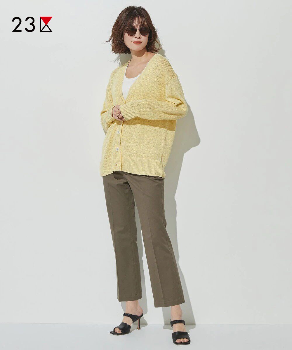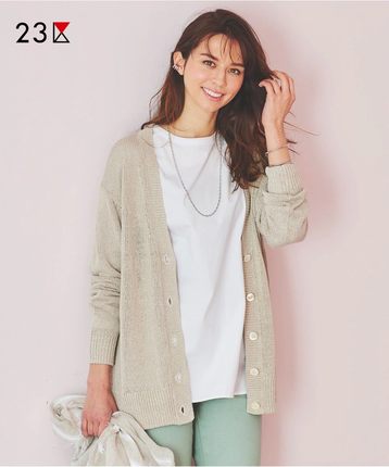 23区日系春季通勤宽松版亚麻桑蚕丝混纺V领中长针织开衫商场同款