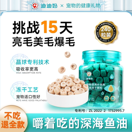 迪迪妈猫咪零食鱼油冻干宠物猫狗营养补充剂虾青素美毛防掉毛颗粒