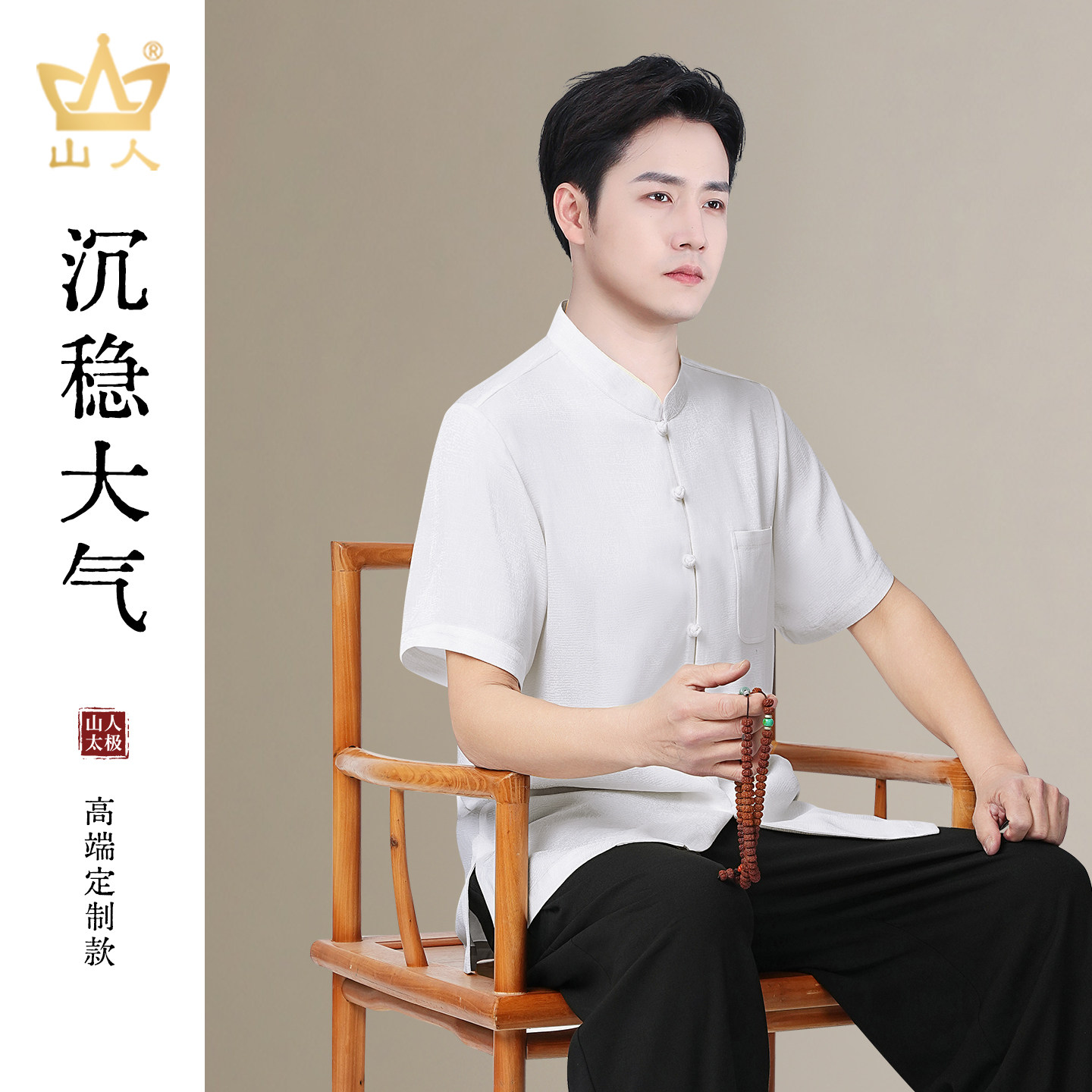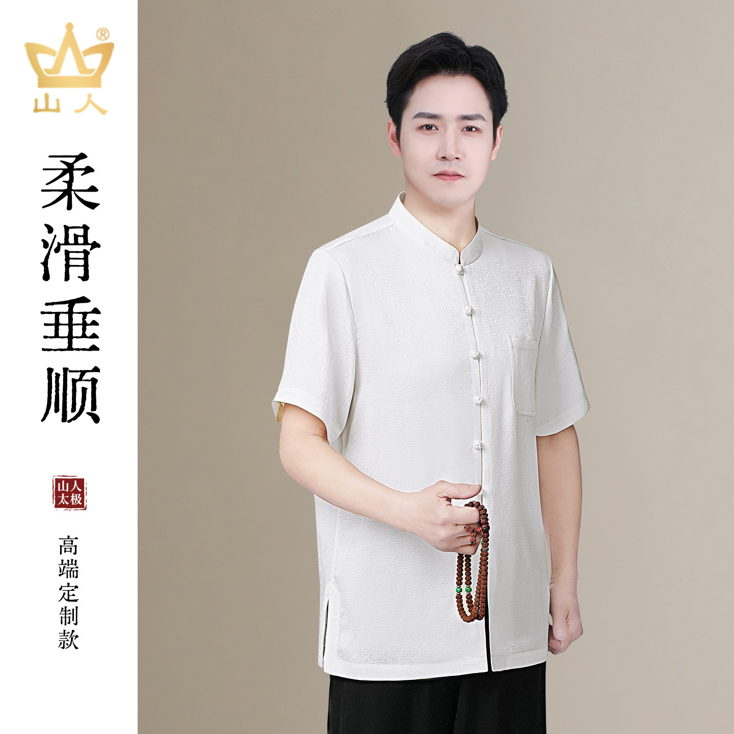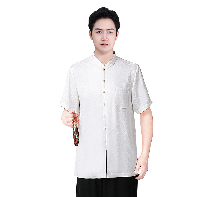 高端定制太极服夏季短袖男士薄款T恤唐装中老年爸爸装新中式衬衫