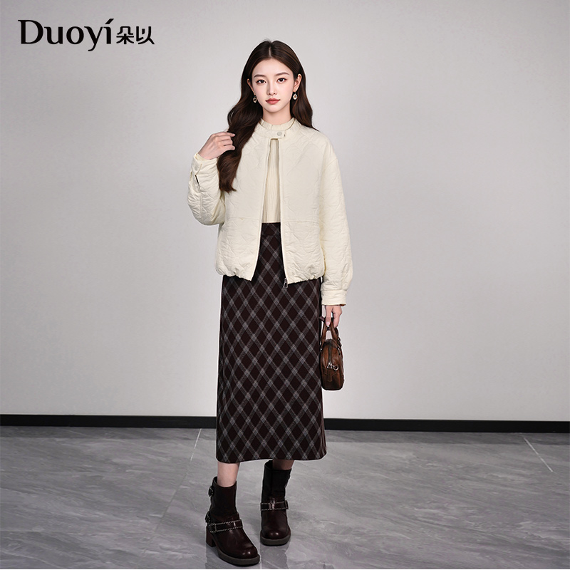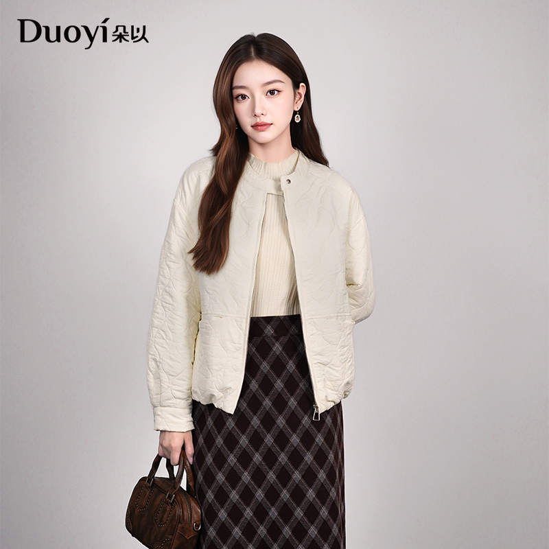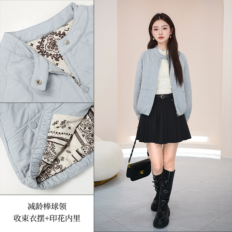 朵以2025冬季新款菱格爱心棉衣夹棉拉链短外套复古印花棉袄女