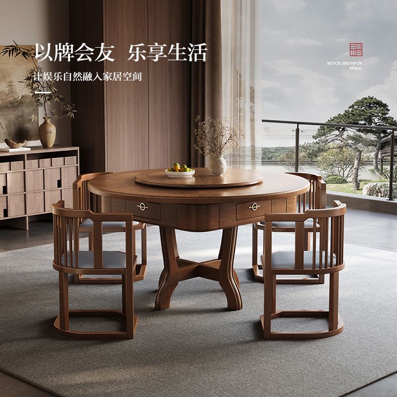 新中式实木麻将机餐桌两用电动麻将桌家用一体收纳椅子新款全自动
