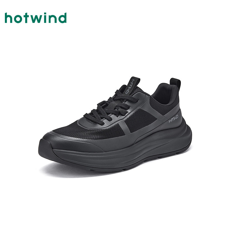 热风男鞋2026年春季新款男士厚底运动休闲鞋黑色百搭跑步鞋子潮