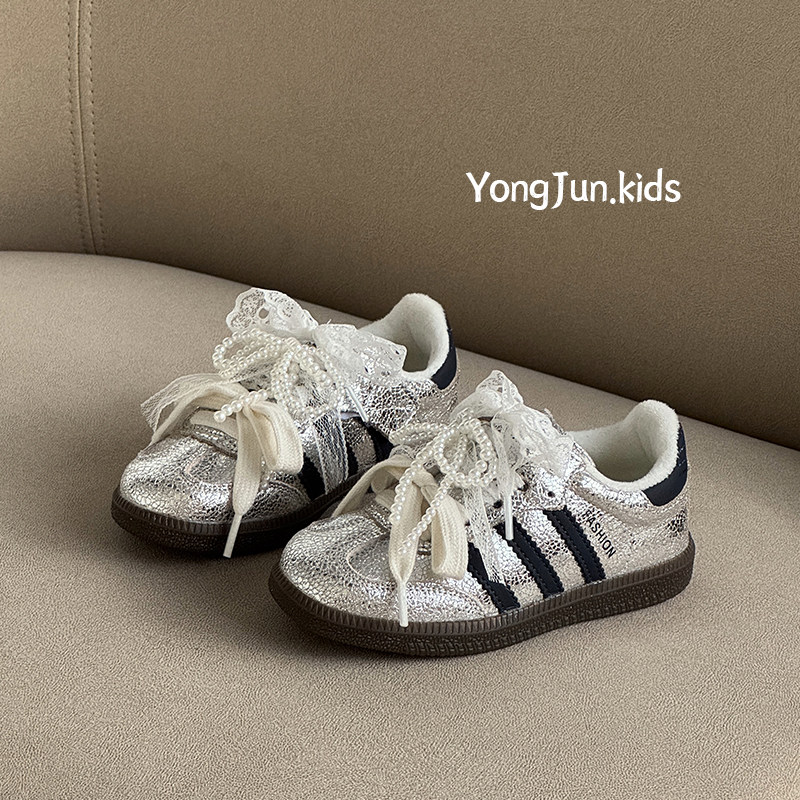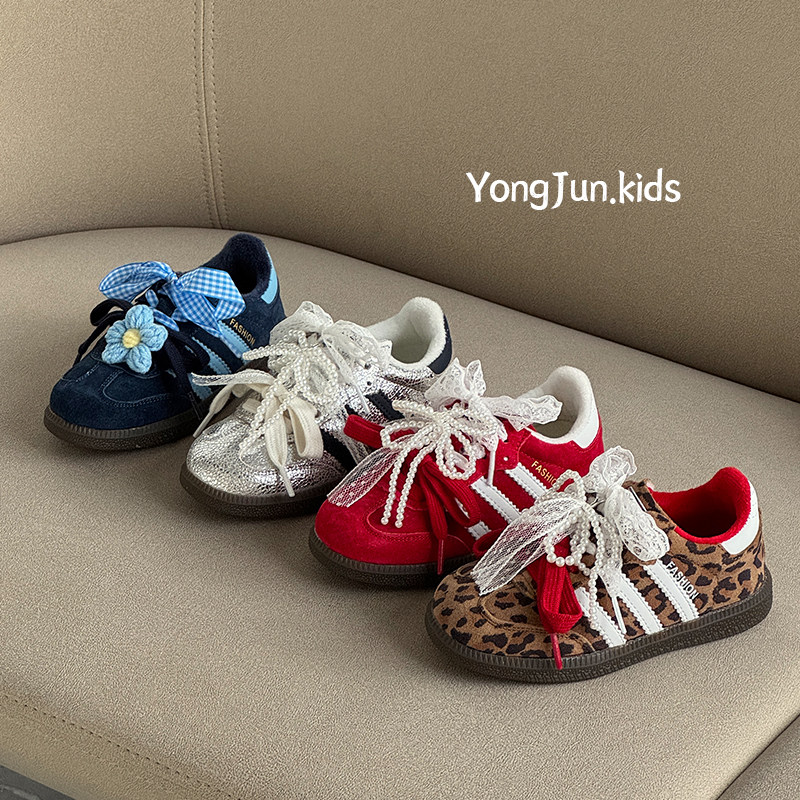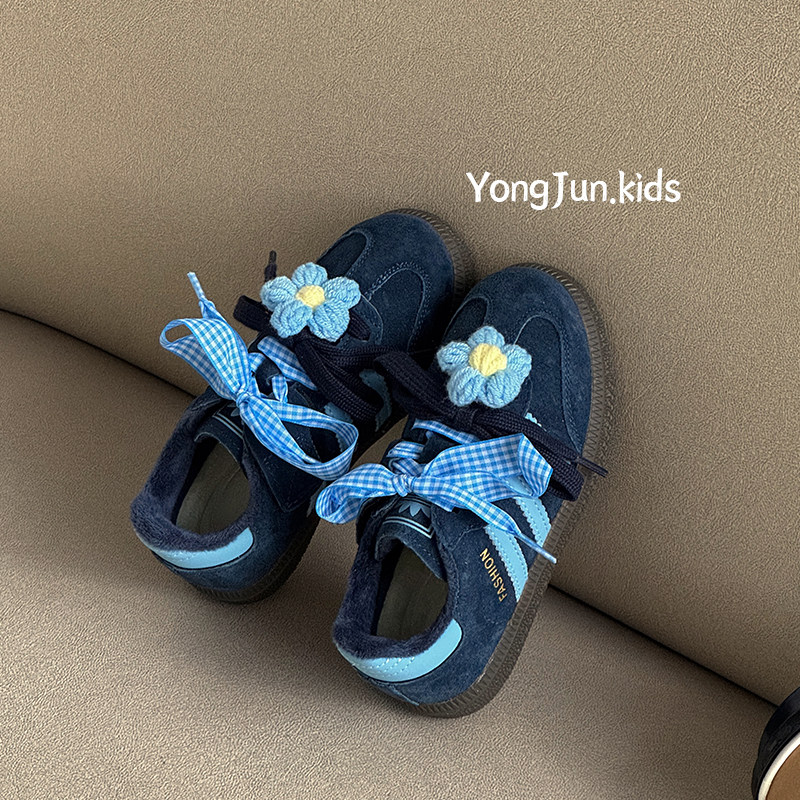 女童鞋子2025冬季新款加绒德训鞋保暖拼色蝴蝶结百搭休闲板鞋单鞋