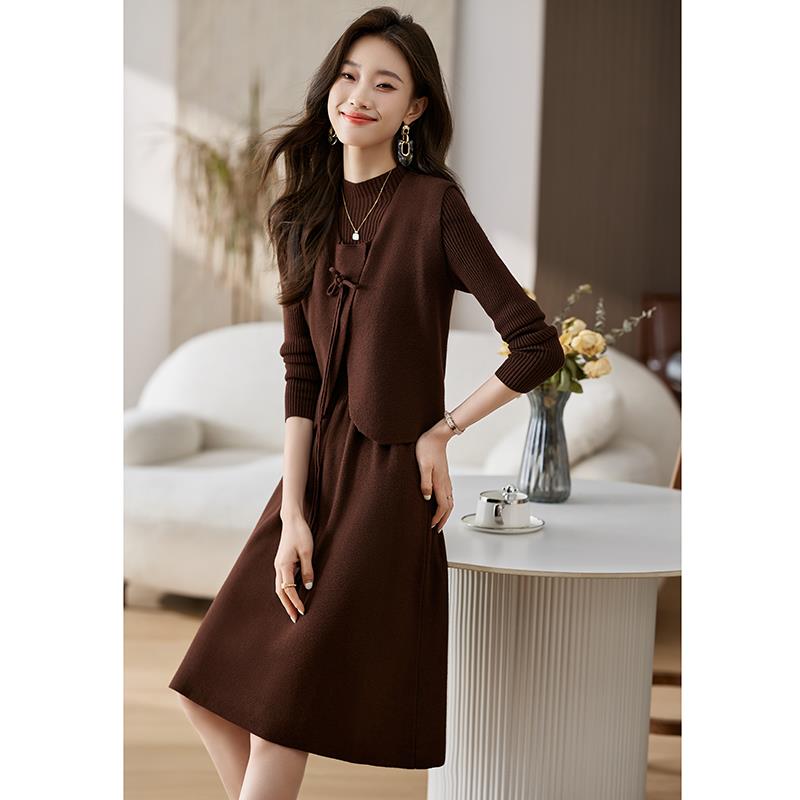 2025新款秋冬年轻妈妈两件套连衣裙喜婆婆婚宴装礼服平时可穿套装