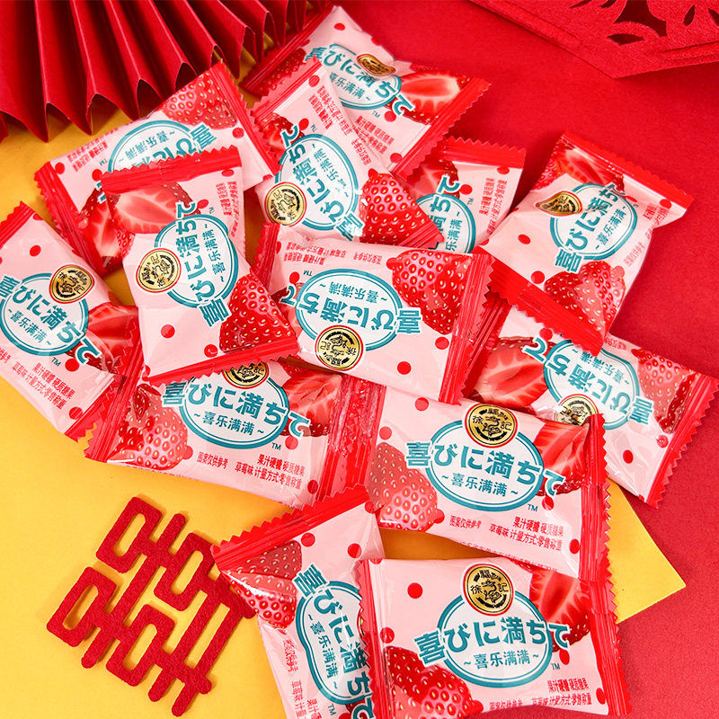 徐福记喜乐满满果汁硬糖草莓味500g喜事喜糖独立包装婚礼休闲零食