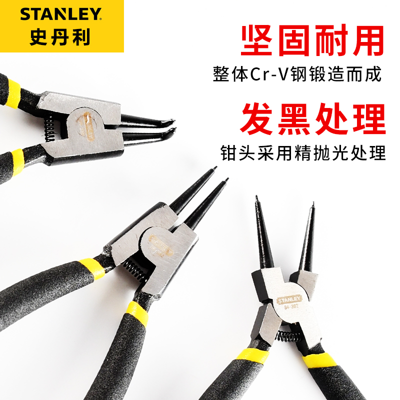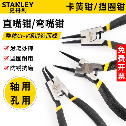 史丹利卡簧钳挡圈钳子轴用孔用直嘴弯嘴多功能内卡外卡工业级套装