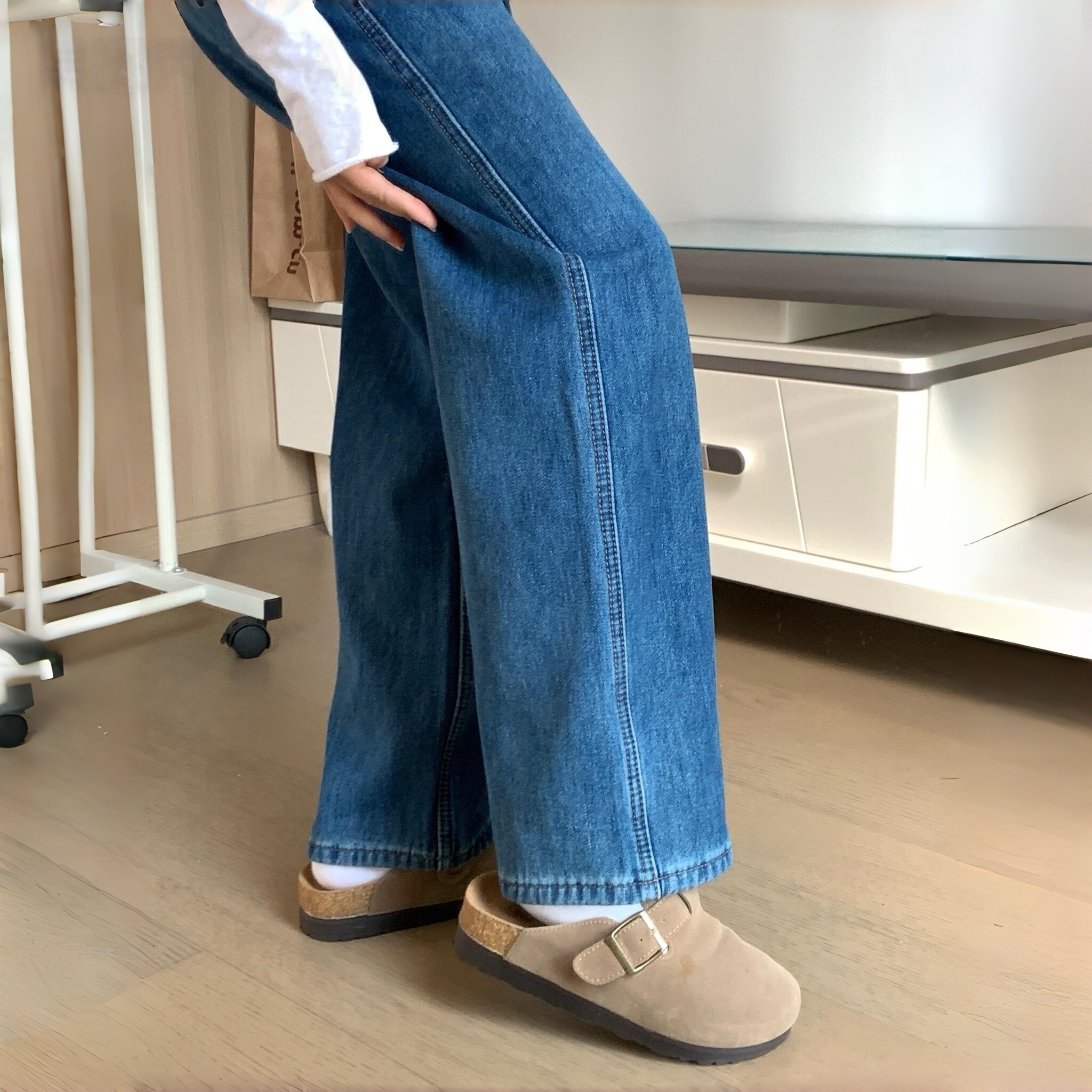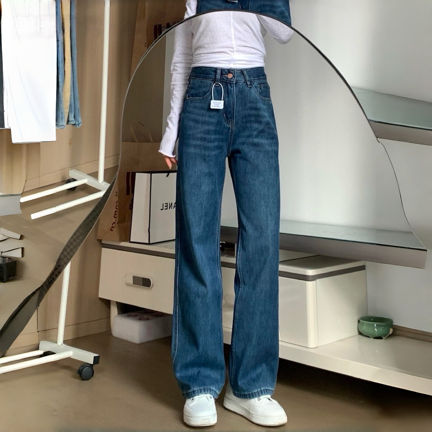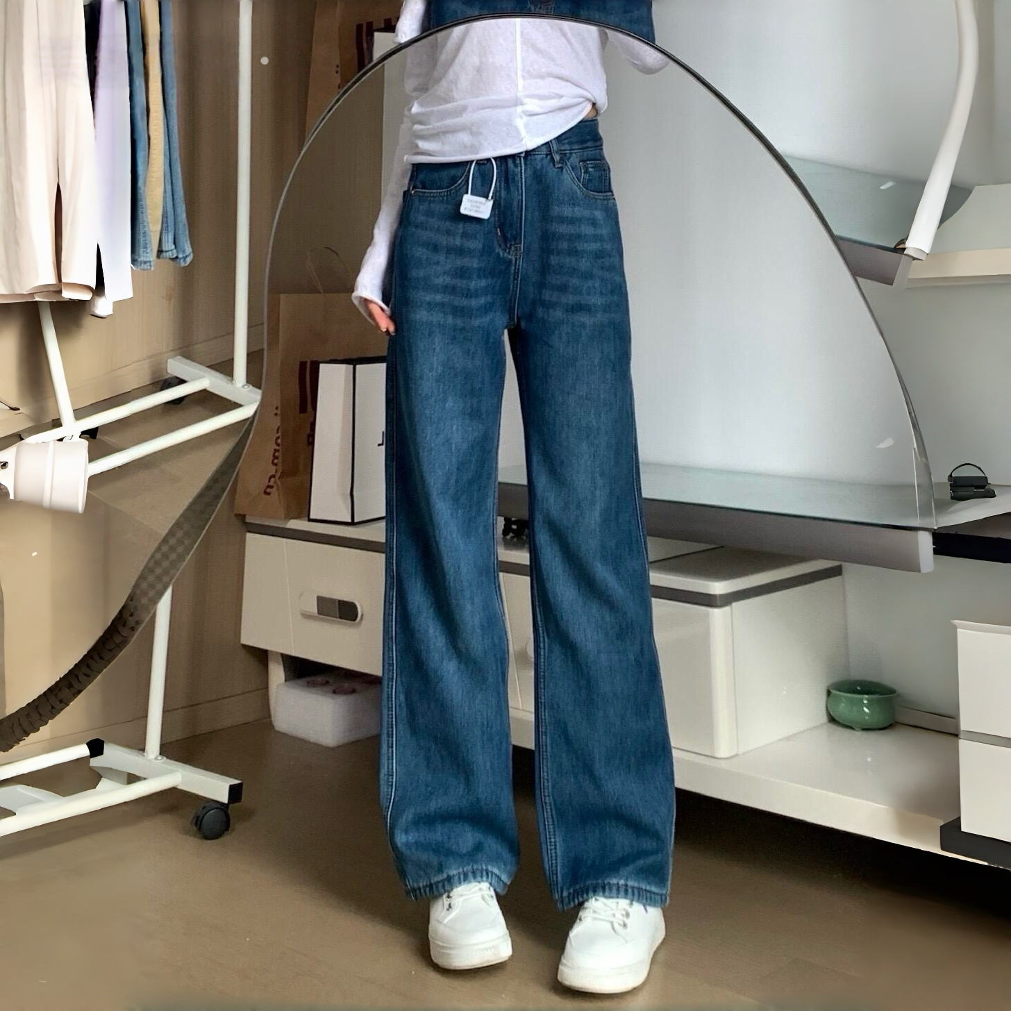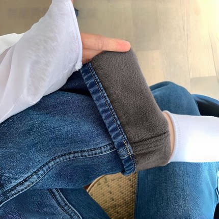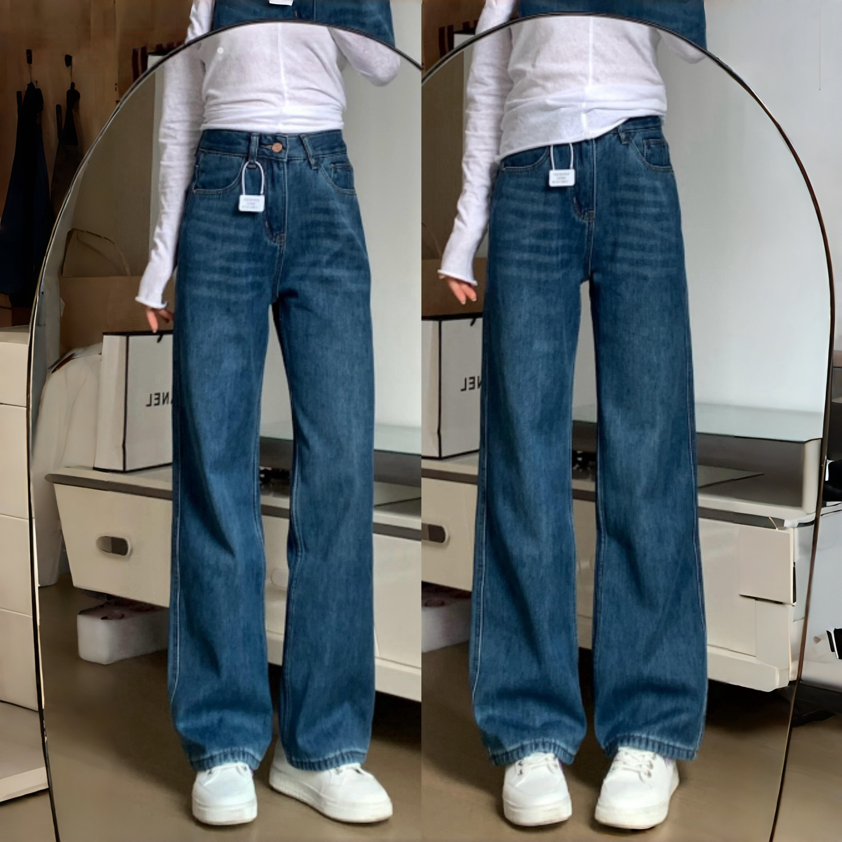 大码胖mm复古蓝加绒秋冬季直筒牛仔裤女高腰显瘦宽松垂感阔腿裤子