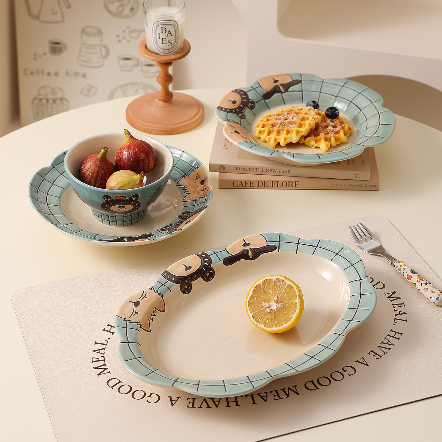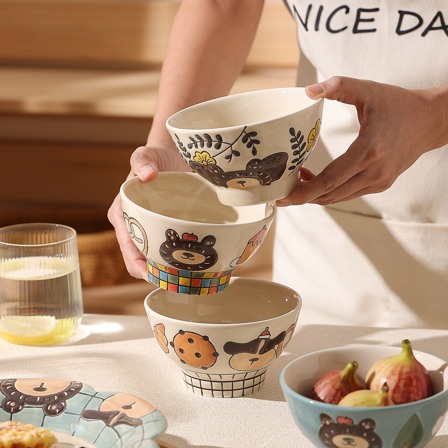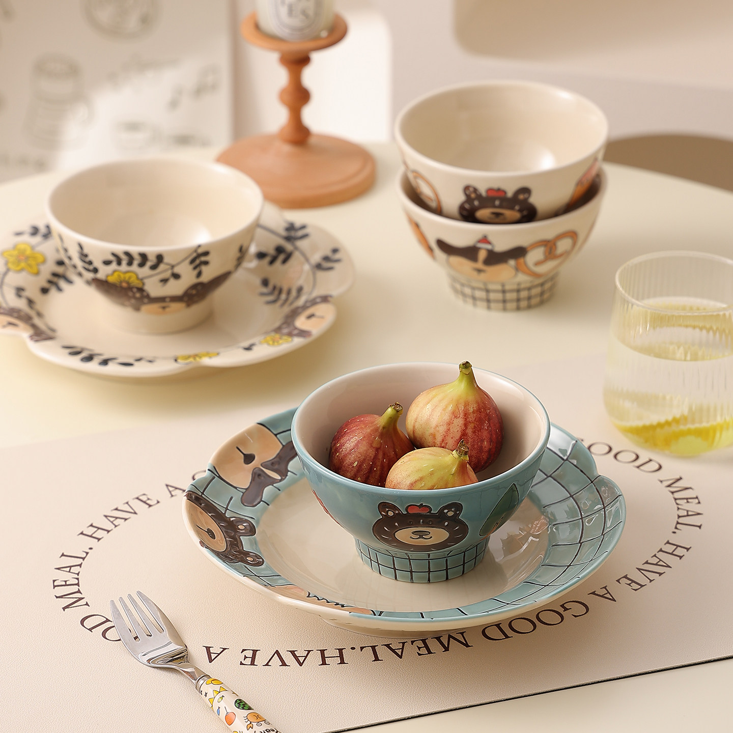 复古卡通釉下彩米饭碗陶瓷酸奶碗水果碗个人专用漂亮餐具家用盘子