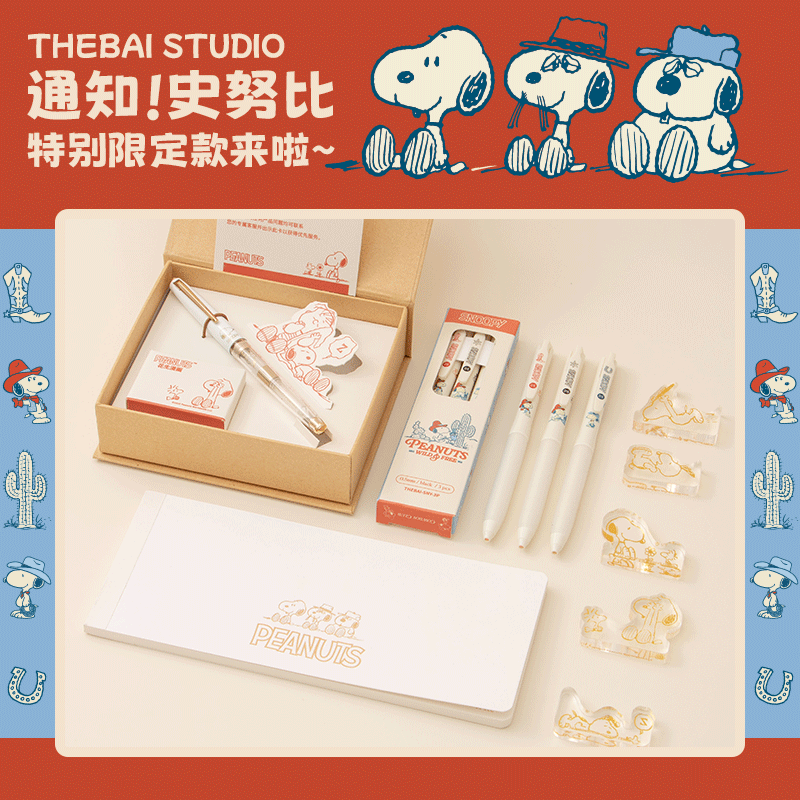 史努比Snoopy限定按动中性笔套装75周年联名笔THEBAI败家考试黑笔