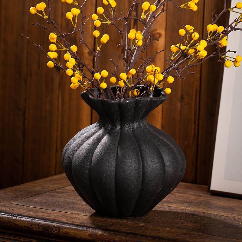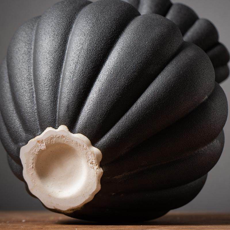 景德镇黑色南瓜异形中号陶瓷花瓶水培插花禅意中式摆件高温烧制