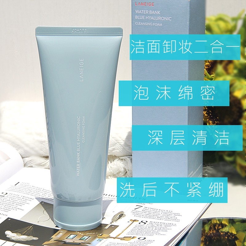 兰芝新水酷透明质酸嘭润洁颜膏洗面奶卸妆洁面二合一保湿控油男女