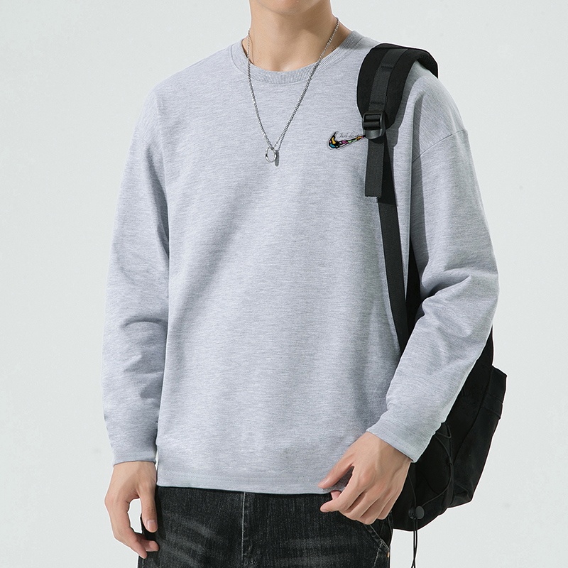 耐克顿打底衫秋季男士纯棉薄款圆领宽松简约纯色百搭休闲长袖t恤