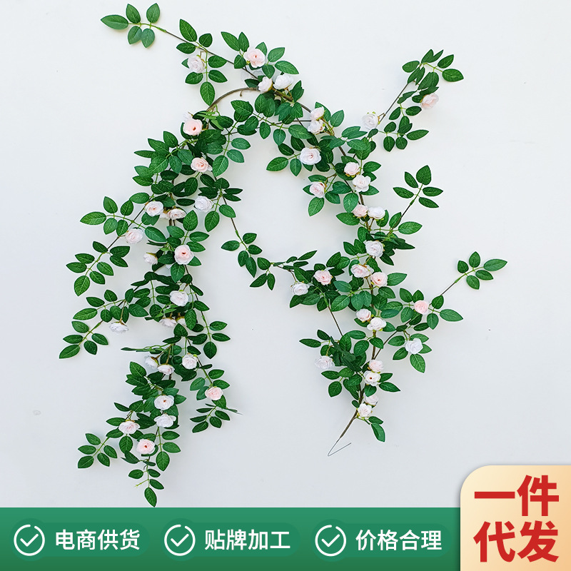 仿真维多利亚蔷薇玫瑰花藤条假花藤蔓塑料花吊顶空调水管道遮挡