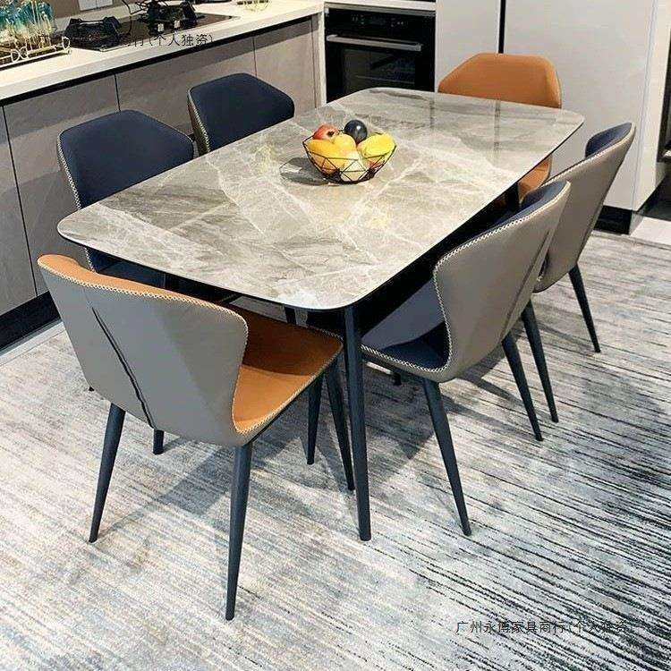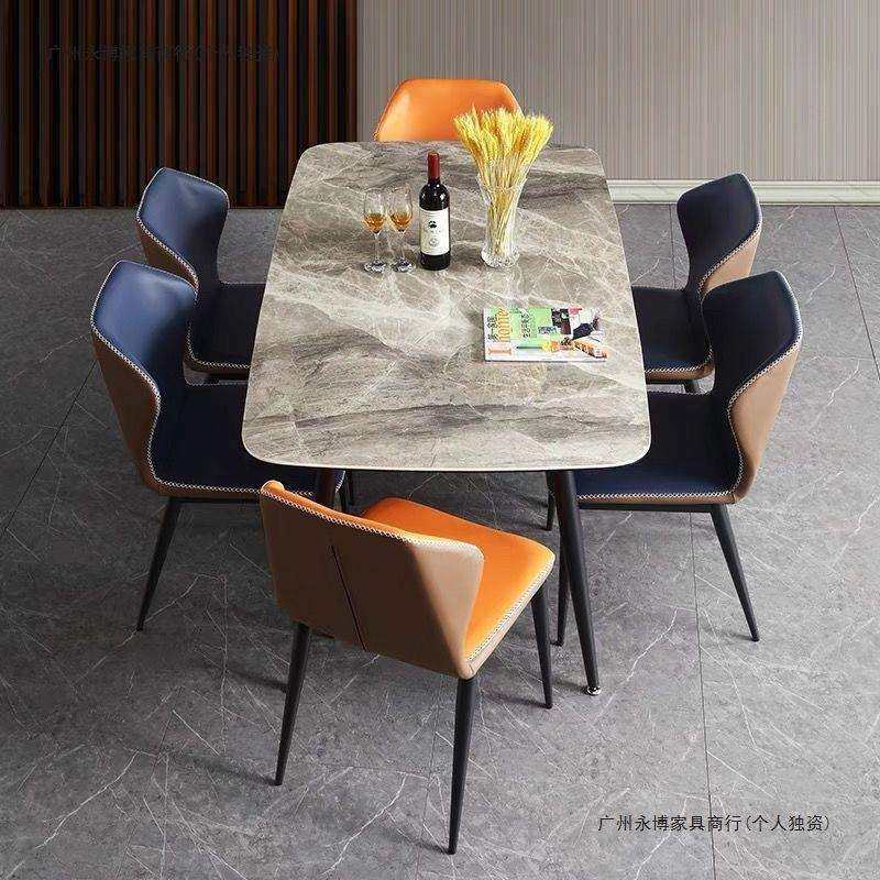 经济意式轻奢亮光岩板餐桌简约现代家庭家居餐厅组合长方形直供
