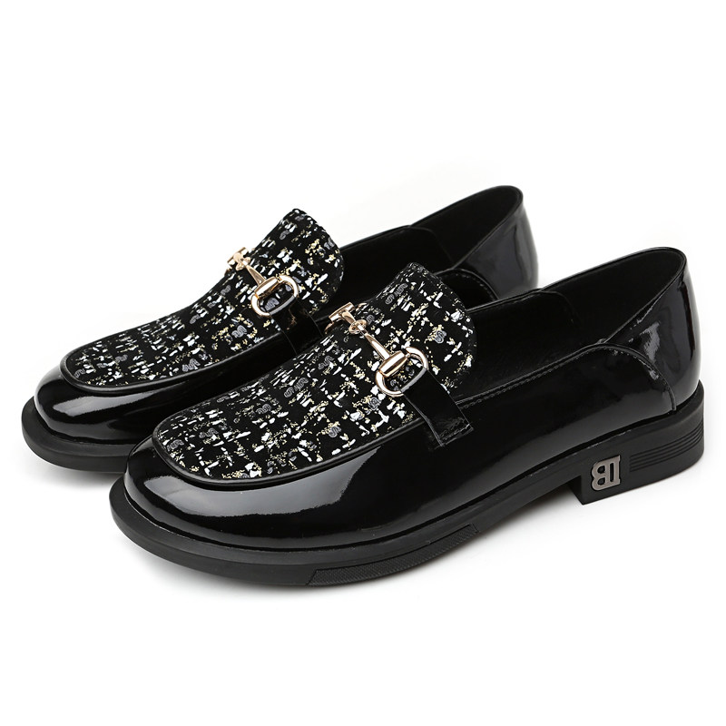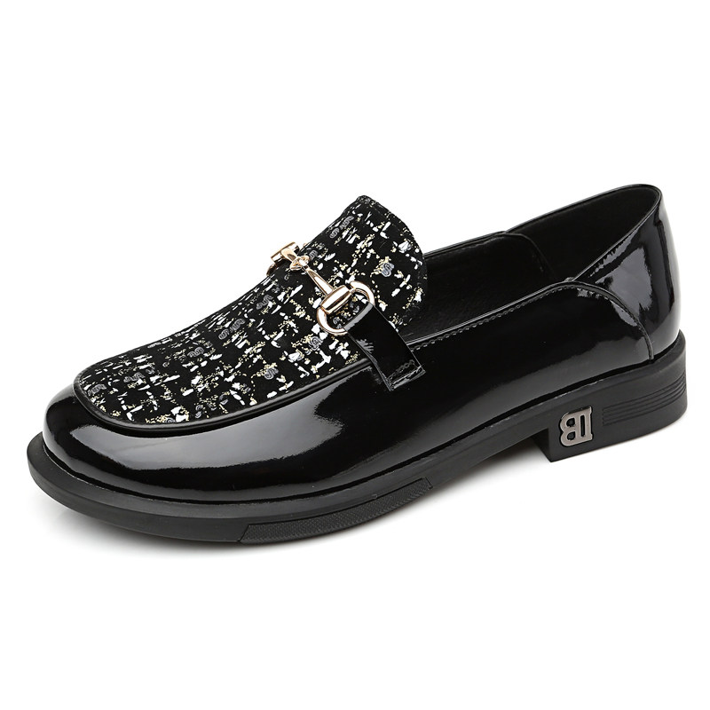 漆皮平底单鞋女软底英伦风乐福鞋
