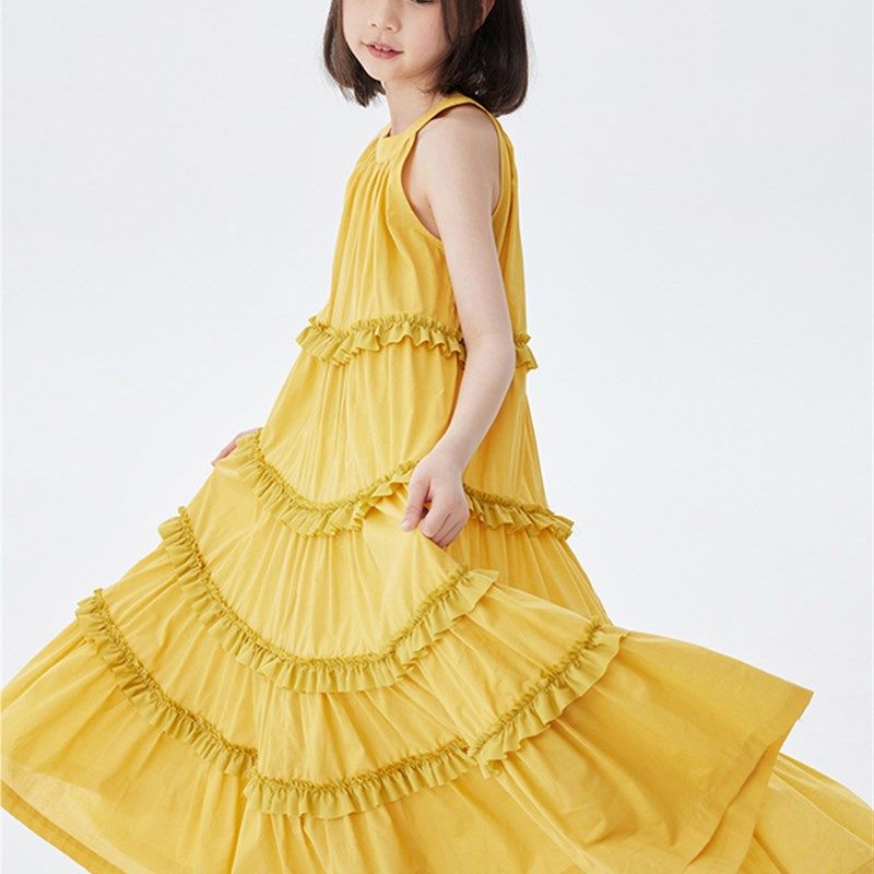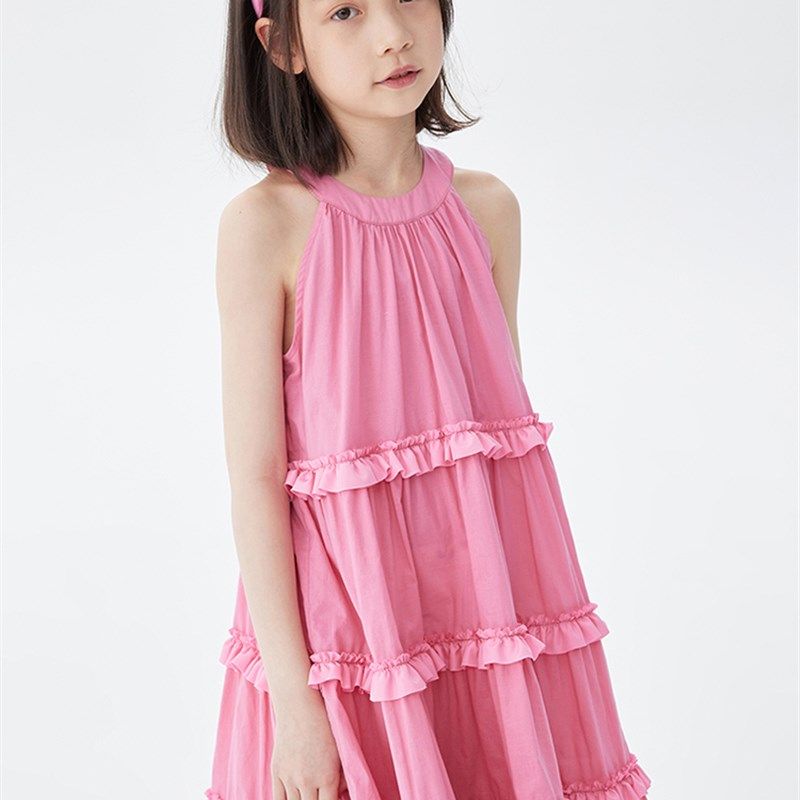 女童长款度假连衣裙夏季儿童多层花边蛋糕摆女大童挂脖背心公主裙