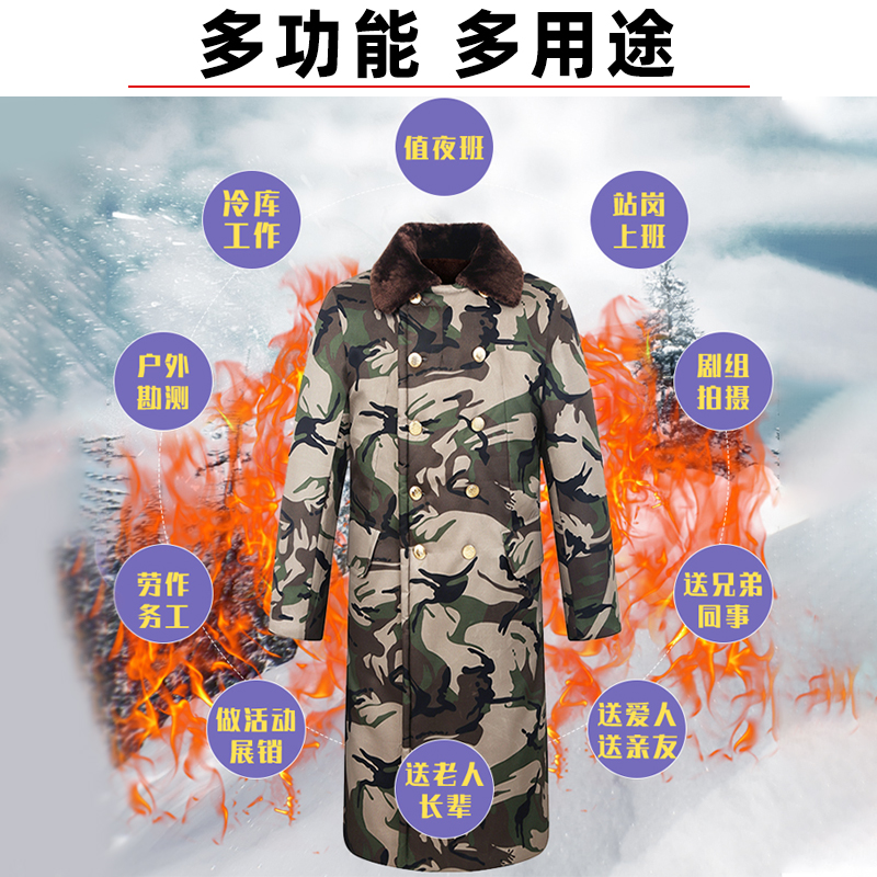 迷彩军大衣男冬季加厚长款冷库防寒服保暖棉袄劳保棉服保安工作服