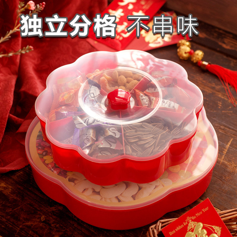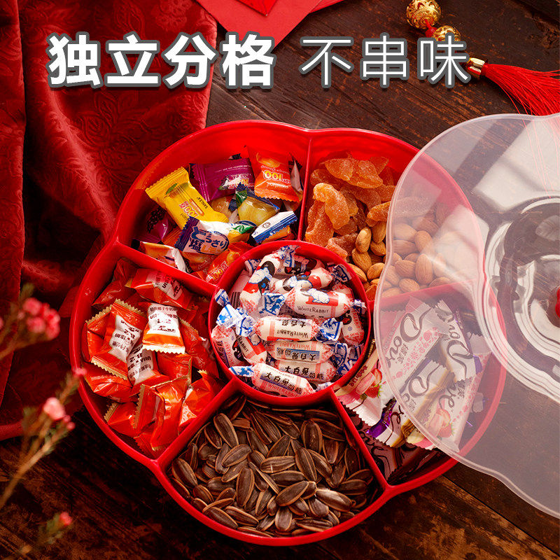 中式新年带盖糖果盒家用客厅茶几干果盒喜庆果盘零食瓜子全盒红色