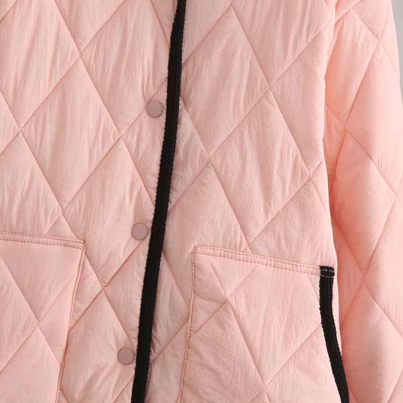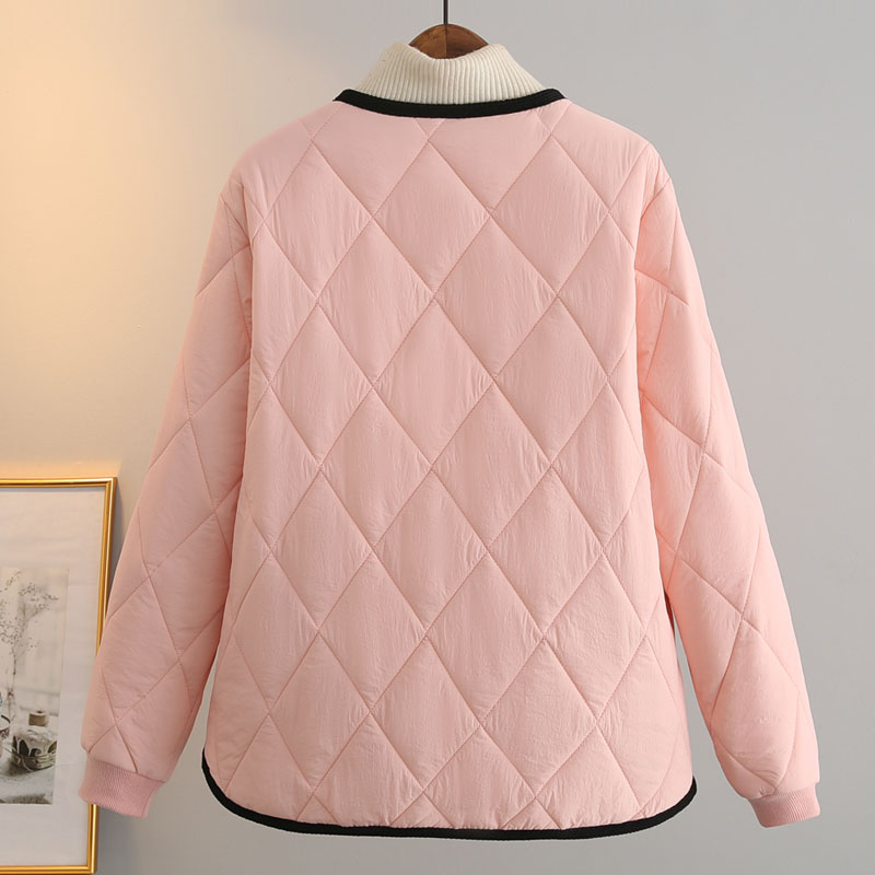 大码女装轻薄小香风撞色菱格棉衣加肥加大码夹棉外套宽松遮肉棉袄