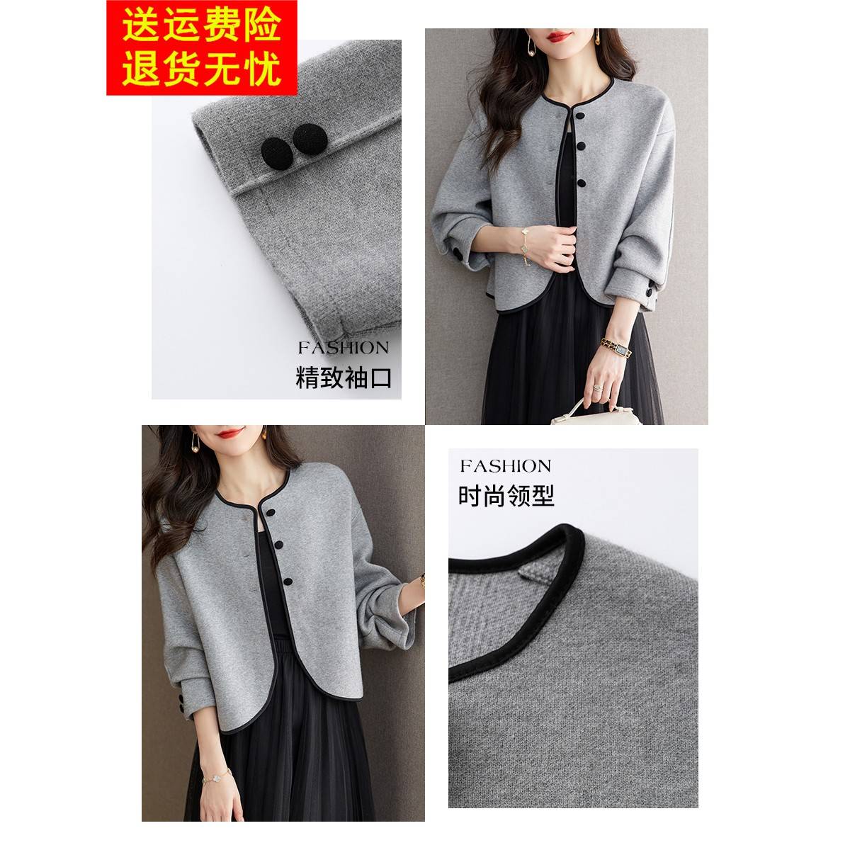 高级感气质灰色毛衣短外套女2025新款早春洋气超好看针织开衫外搭