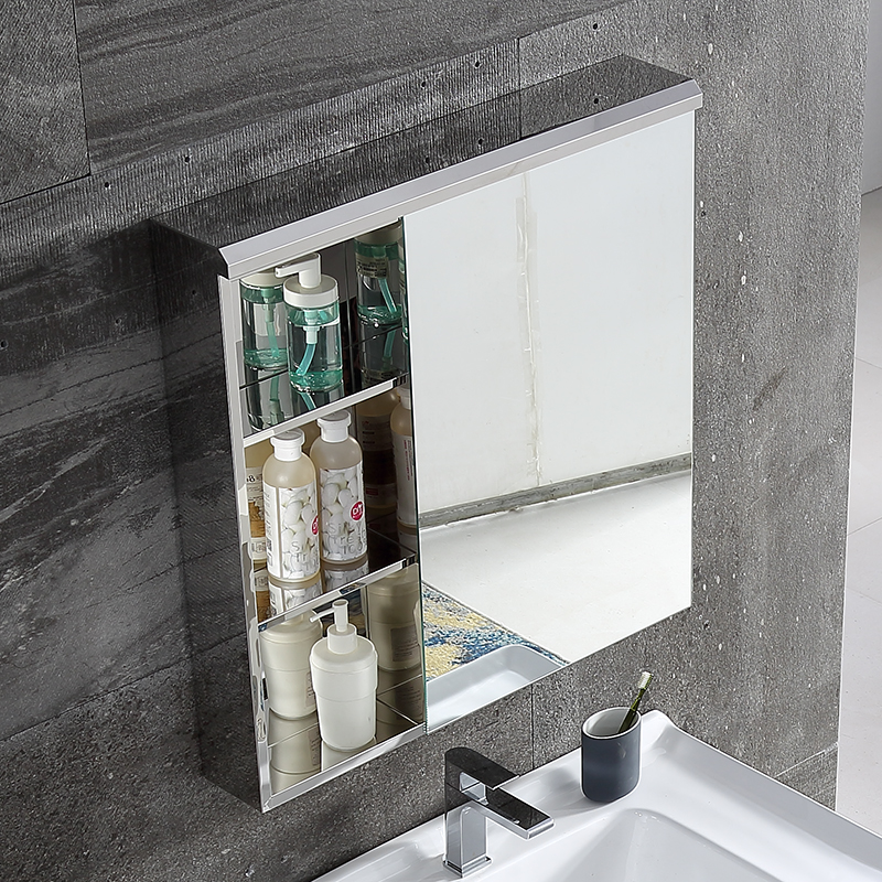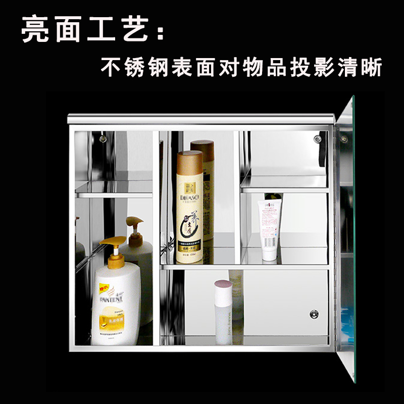 304不锈钢浴室镜柜 现代简约梳妆镜子柜 卫生间镜子带置物架 吊柜