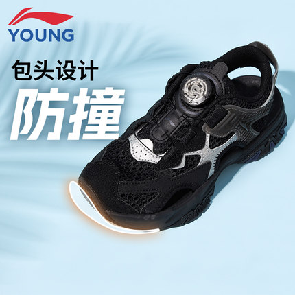 李宁童鞋儿童包头凉鞋男女大童夏季新款透气网面旋钮减震溯溪鞋子