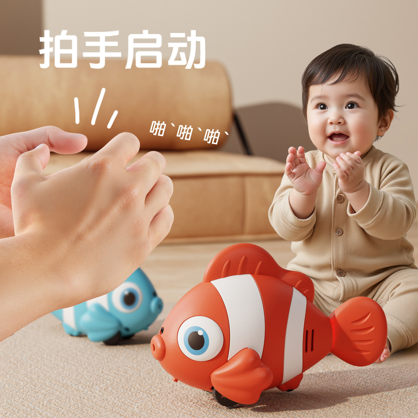 电动鱼玩具儿童电子仿真会动摇摆小鱼婴儿爬行引导6个月宝宝走路8