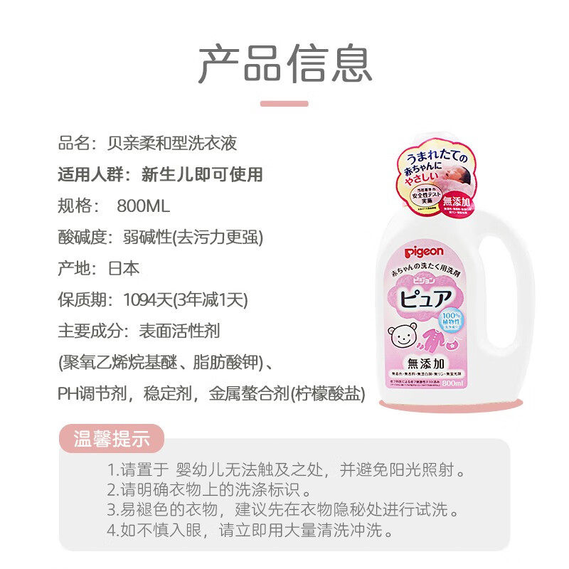 【自营】贝亲 进口婴儿洗衣液衣物清洗剂宝宝内衣尿布柔顺柔软剂