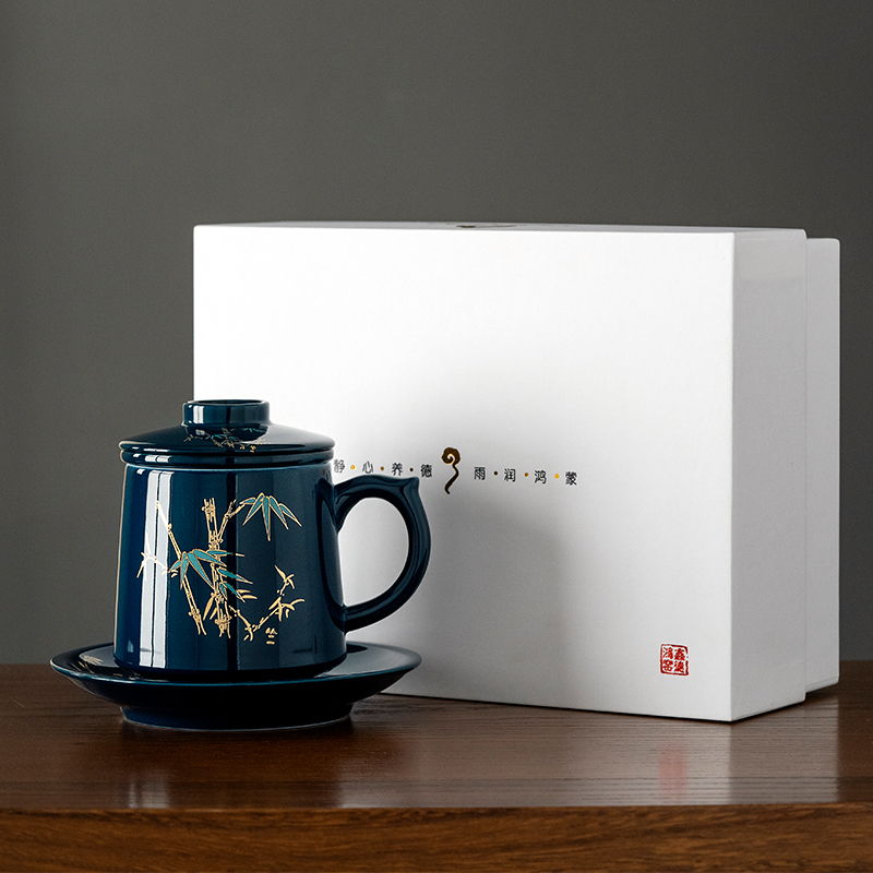 陶瓷茶杯带盖国风办公室过滤泡茶杯家用水杯男士简约茶水分离杯子