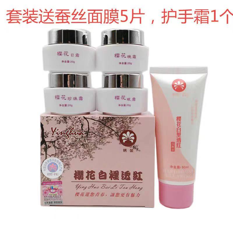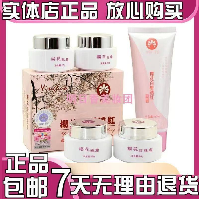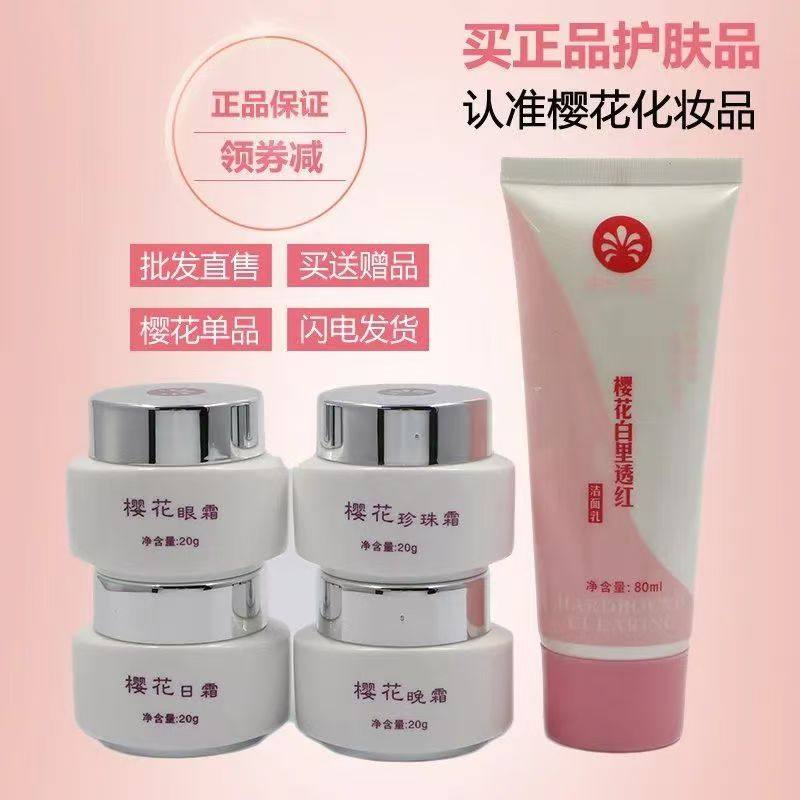 白里透红老牌子国货妈妈护肤品正品日本樱花四合一套装晚霜洗面奶