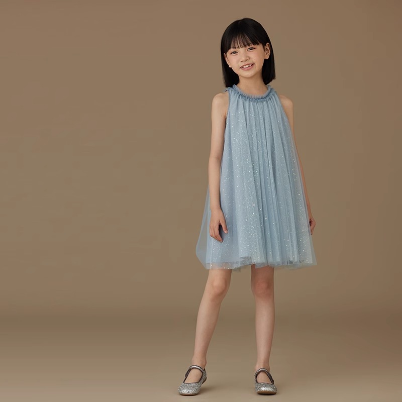哈齿童装儿童湖蓝色连衣裙夏季薄款公主裙纱裙女孩背心裙女童洋气