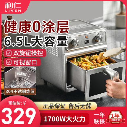 利仁小钢人空气炸锅大容量金属无涂层双热源可视电炸锅烹饪机