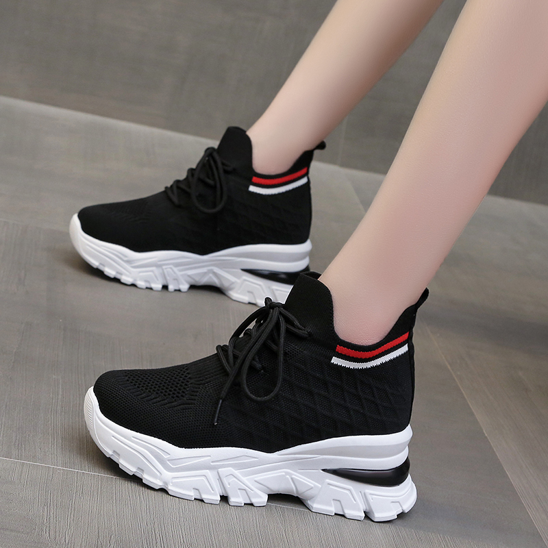 8cm内增高飞织女鞋超火春季新款厚底透气小白鞋女百搭运动休闲鞋