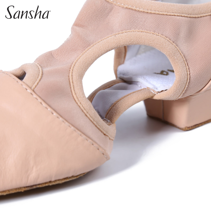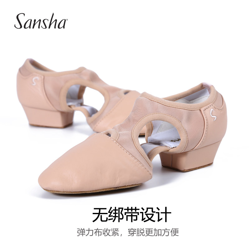 Sansha法国三沙舞蹈鞋芭蕾舞女软底教师鞋皮底形体带跟练功鞋考级