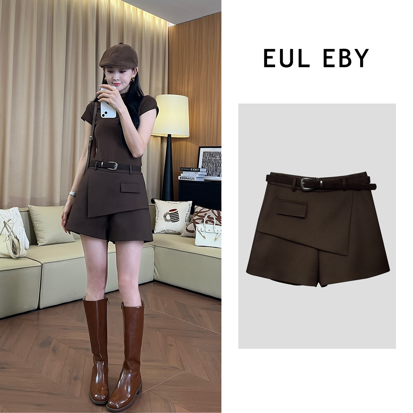 EUL EBY设计感西装短裙裤不规则秋季时尚高腰通勤阔腿裤女251425#