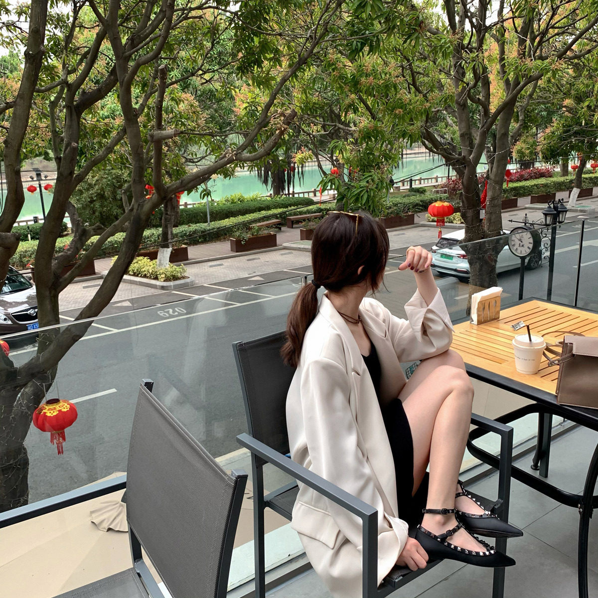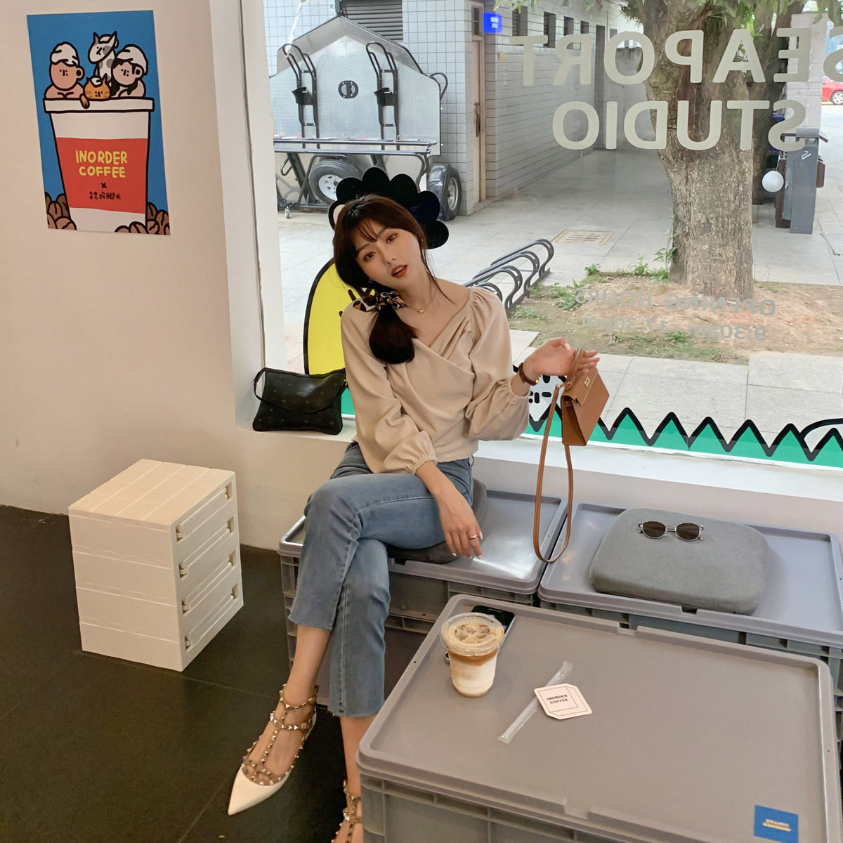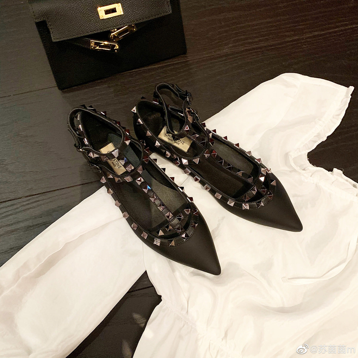 【sheii苏茵茵】精致到可怕~尖头浅口绑带铆钉平底鞋女单鞋粗跟
