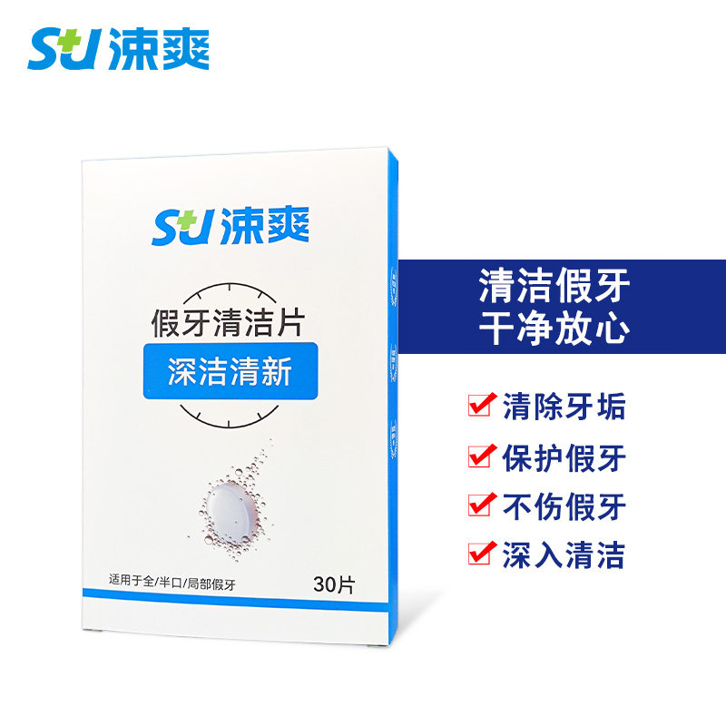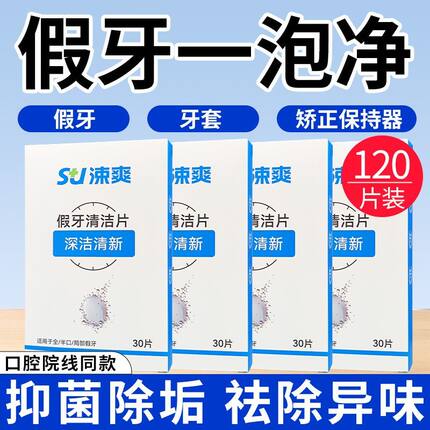 涑爽假牙清洁片30片去除细菌烟渍茶渍牙垢去异味清新口气清洁口腔
