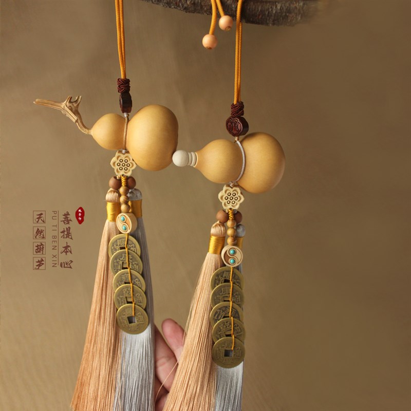 门对门五帝钱天然葫芦挂件纯铜铜钱开口葫芦流苏室内大门卧室摆件