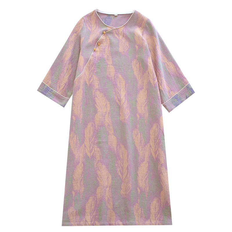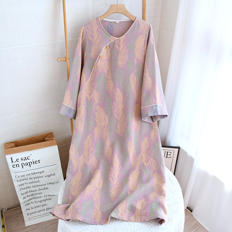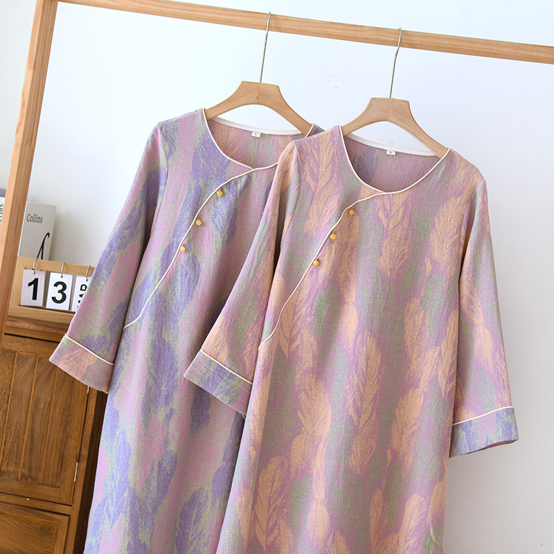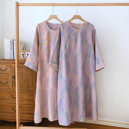 新中式色织纯棉睡裙女薄款纱布家居服睡衣长裙春夏秋复古可外穿